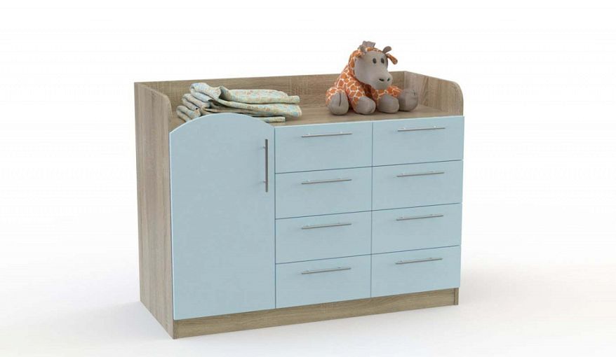 Комод Есения 2 BMS может использоваться для переодевания малыша, а когда тот подрастет – для хранения игрушек, книг и прочих вещей. Устойчивая широкая модель на сплошном основании оборудована распашным отделением с полками и фигурным фасадом и восемью выдвижными ящиками. Встроенная пеленальная поверхность закрыта высокими, скругленными для безопасности бортиками. Купить комод Есения 2 BMS приглашаем в наш интернет-магазин с выбором фурнитуры и цвета по каталогу.