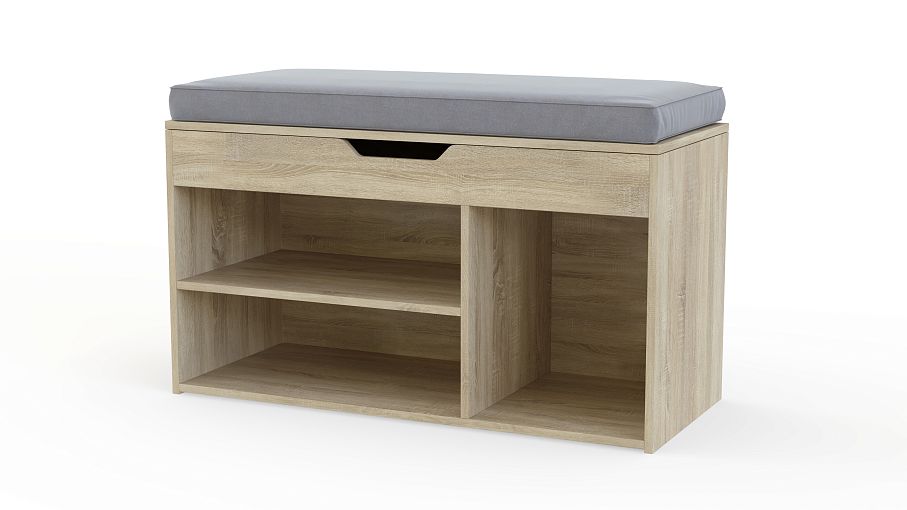 Обувница Томас 1 BMS отличается нарочитой простотой, функциональностью и органично впишется в интерьер современной прихожей. Комфортная банкетка с обивкой сиденья в износостойкой ткани дополнена удобной системой хранения из открытых обувных полок и отсека для аксессуаров и принадлежностей для ухода. Выполнена практичная обувница в натуральных оттенках под массив дерева. Купить обувницу Томас 1 BMS и компактно разместить повседневную обувь вам поможет наш интернет-магазин.