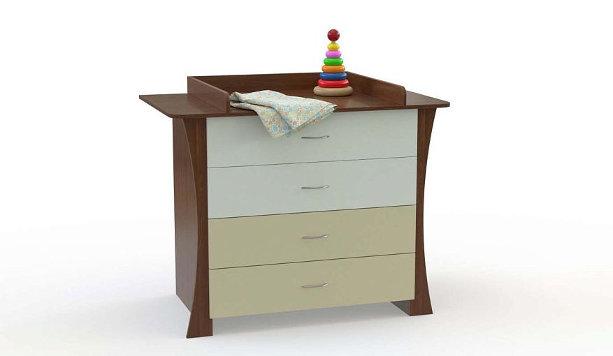Пеленальный комод Саншайн 2 BMS BMS привлекает оригинальным дизайном фасада, оформленного полукруглыми вырезами, и удобной системой хранения. Четыре просторных выдвижных ящика позволяют разместить под рукой необходимые средства гигиены, одежду, игрушки и прочие вещи ребенка. Верхняя панель скруглена по углам и дополнена бортиками, ограничивающими место для пеленания. Купить пеленальный комод Саншайн 2 BMS вы сможете в нашем интернет-магазине с выбором фурнитуры и цвета по каталогу.