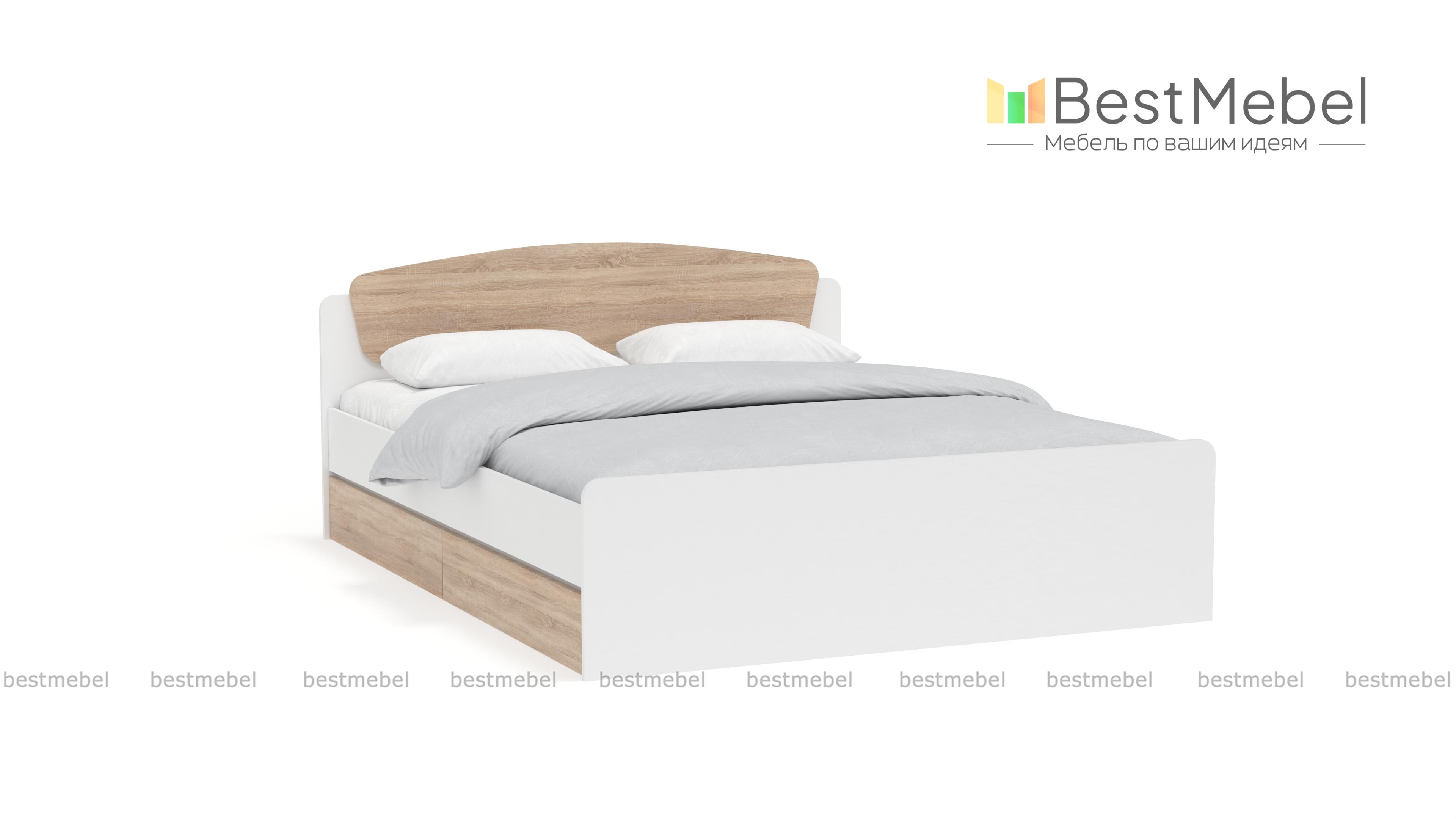 Комфортная модель в бело-бежевой гамме Астория Омни BMS подойдет и классическому, и современному интерьеру спальни благодаря гармоничному сочетанию простой формы и легкого декора. Для удобного размещения постельных принадлежностей кровать дополнена четырьмя вместительными выкатными ящиками в основании. Спинка в изножье отсутствует, изголовье оригинально оформлено полукруглой накладкой в тон. Модель надежной конструкции по демократичной цене ждет вас в нашем интернет-магазине.