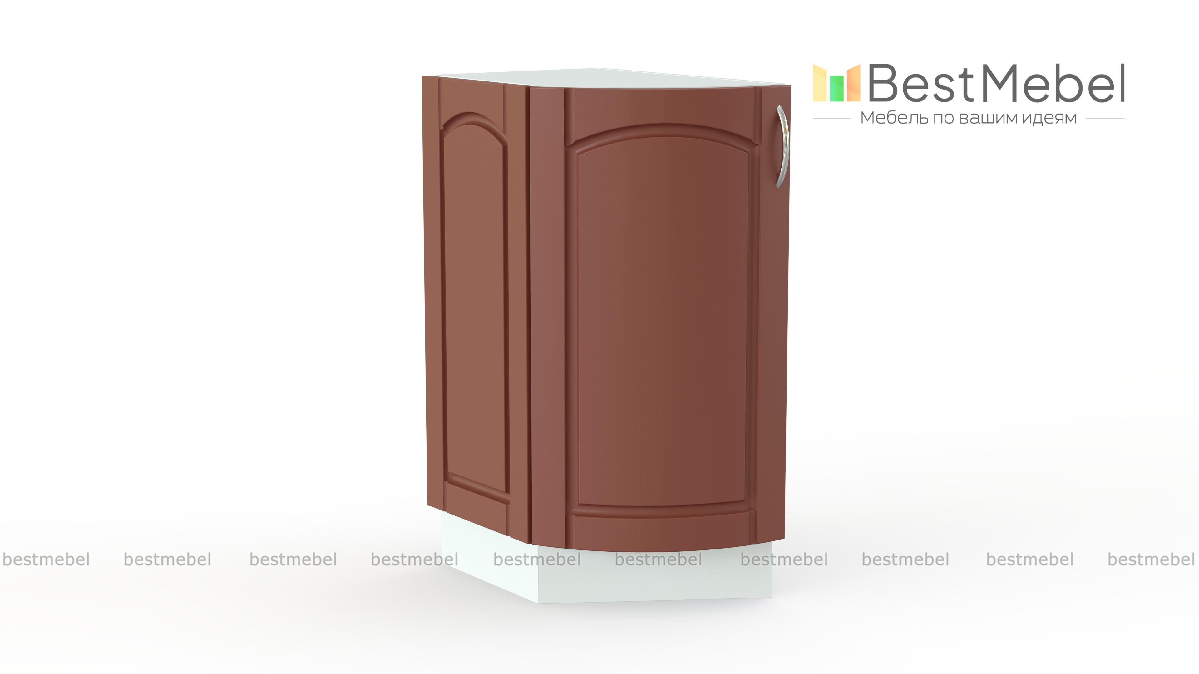 Стол торцевой радиусный Трапеза BMS предназначен для завершения нижнего ряда модульного комплекта для кухни. Оригинальная деталь позволит сделать всю композицию более эффектной и визуальной легкой, а также безопасно сгладит острые углы. Шкаф оборудован распашной дверцей с гнутым фасадом и внутренним отделением, удобным для хранения разнообразных кухонных мелочей. Купить стол торцевой радиусный Трапеза BMS и дополнить классический гарнитур стильным элементом вам поможет наш интернет-магазин.