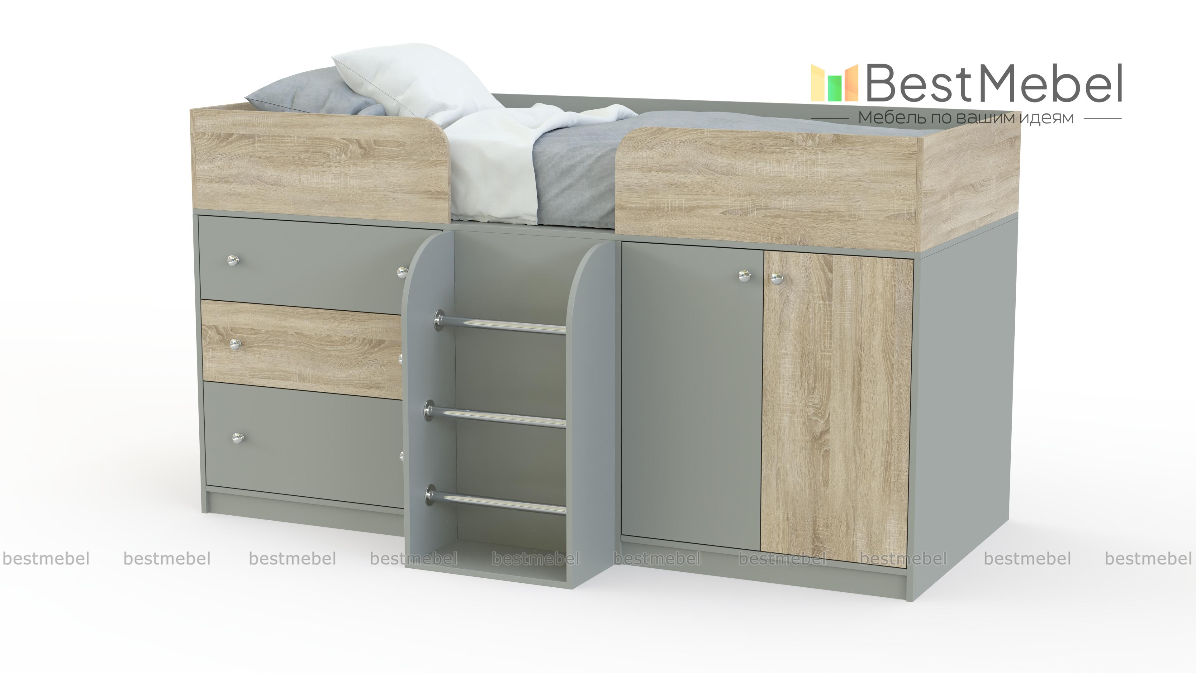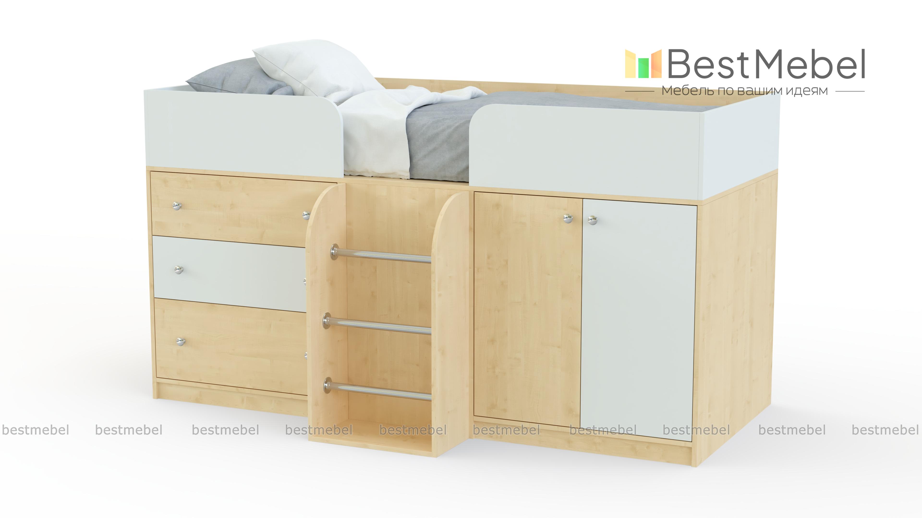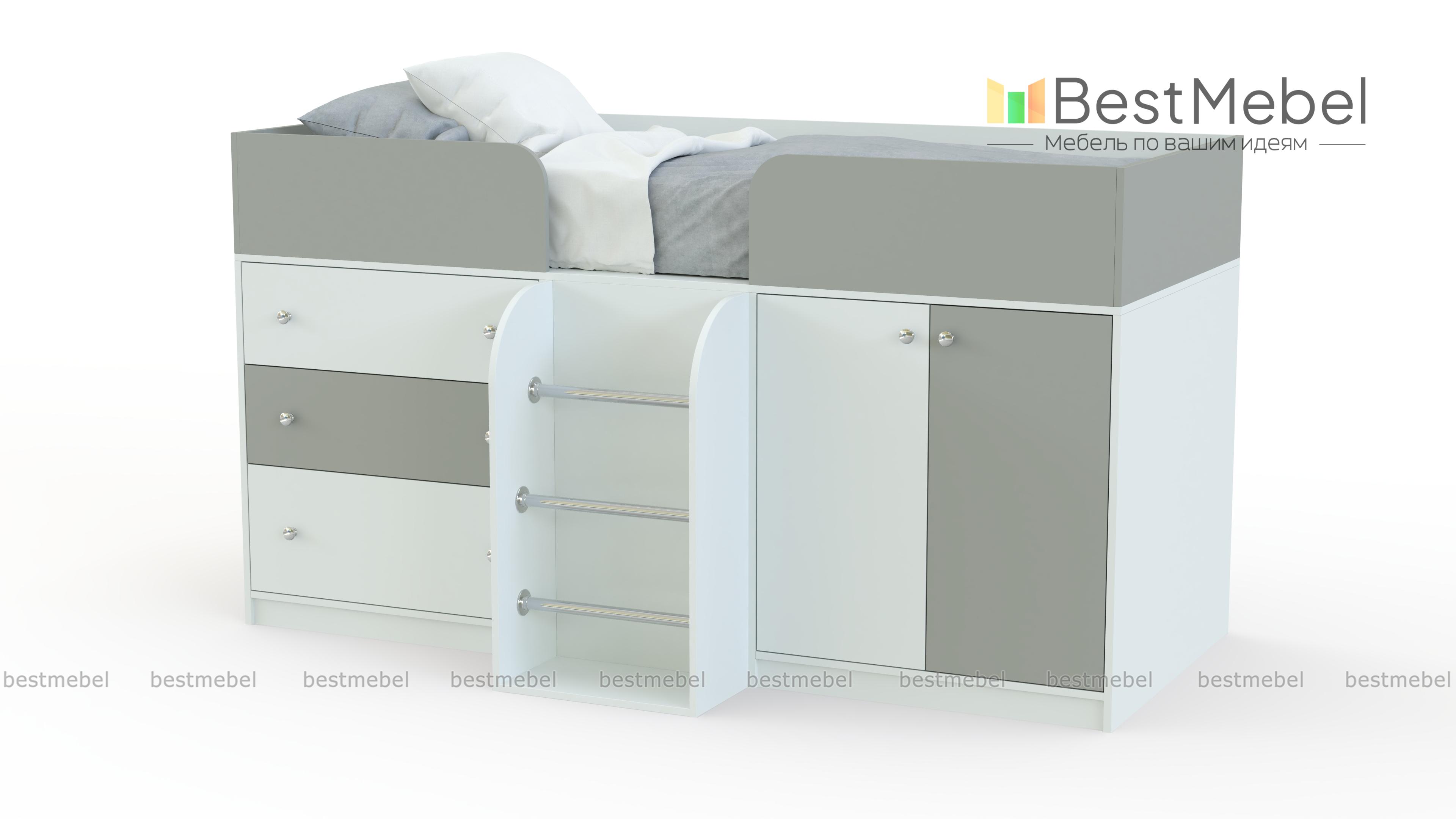 Кровать-чердак Астра-5 BMS поможет обустроить уютную детскую и компактно разместить большое количество вещей. Занимая минимум полезной площади, модель оборудована комфортным спальным местом с защитными бортиками, распашным отделением, комодом с выдвижными ящиками и секцией с лестницей. Углы кровати безопасно скруглены, а разнообразие цветовых решений позволит подобрать оптимальный вариант. Купить кровать-чердак Астра-5 BMS приглашаем в наш интернет-магазин по выгодной цене.