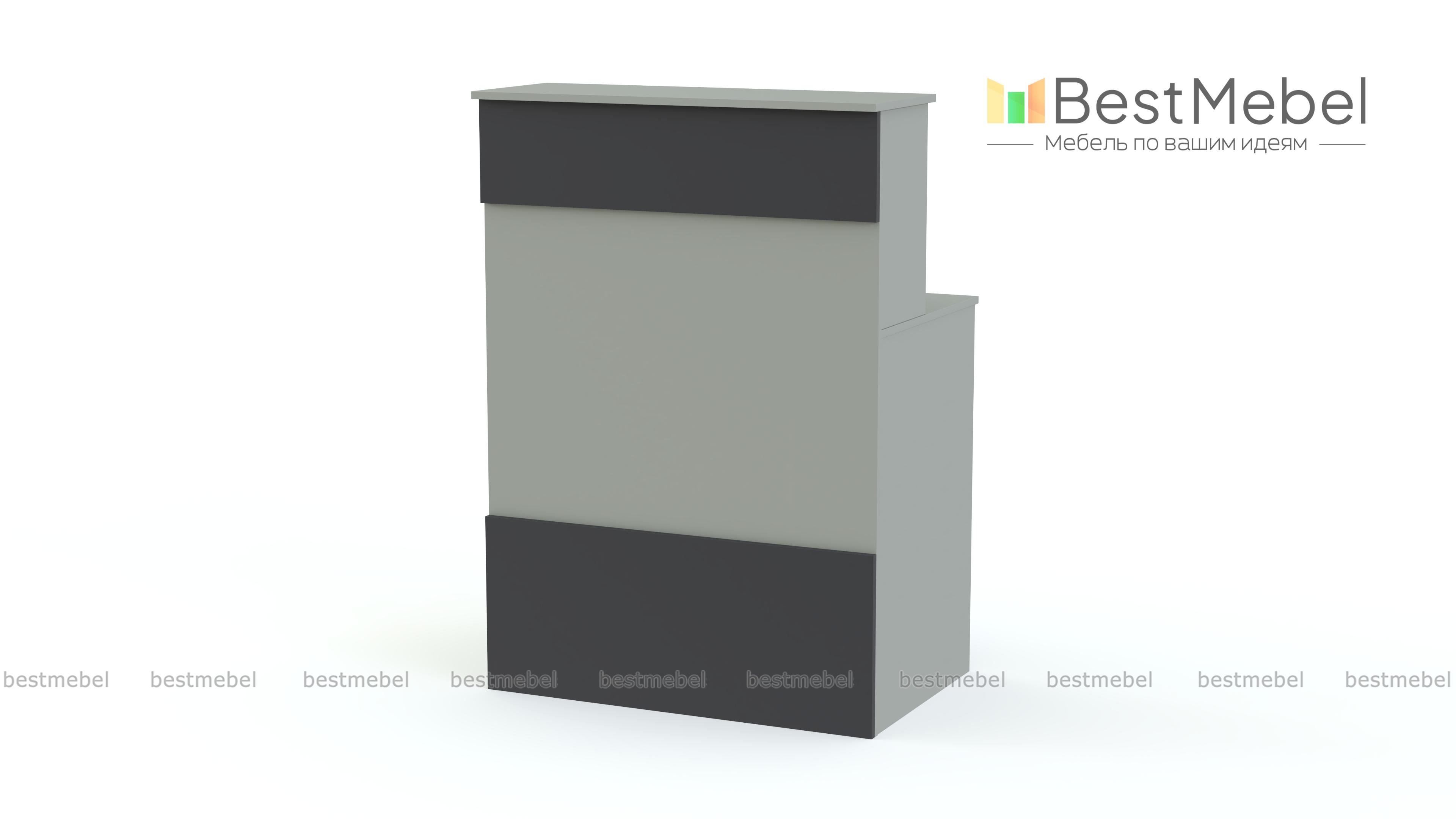 Ресепшен Рейна № 1 BMS отличается компактными размерами и современным дизайном. Выполненная в универсальном белом цвете, модель декорирована серыми, контрастными фасадными планками. Стойка оборудована двумя широкими столешницами – со стороны посетителя и внутренней, а также открытой полкой для разнообразных мелочей. Износостойкие и простые в уходе поверхности надолго сохранят эстетичный вид. Купить ресепшен Рейна № 1 BMS по доступной цене приглашаем в наш интернет-магазин.