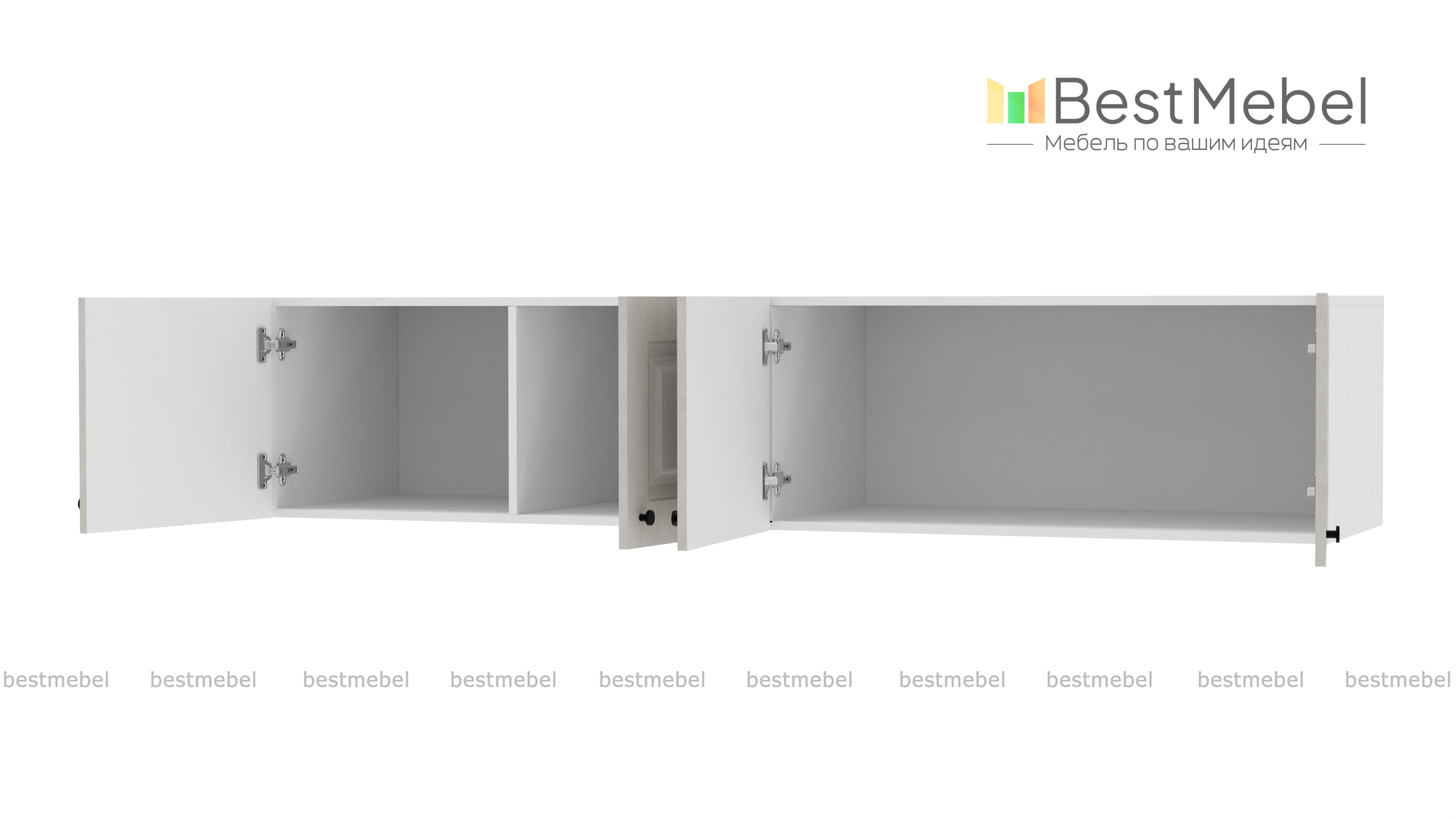 Антресоль Бонн 4 BMS значительно увеличит вместительность вашего четырехдверного шкафа. Благодаря двум распашным отделениям — единому и разделенному перегородкой, вы сможете убрать наверх те вещи, которыми редко пользуетесь. Классический светлый фасад, выполненный из МДФ, украшен рамочной фрезеровкой, дверцы удобно открываются с помощью маленьких круглых ручек. Купить антресоль Бонн 4 BMS приглашаем в наш интернет-магазин с выбором размеров, цвета и фурнитуры.