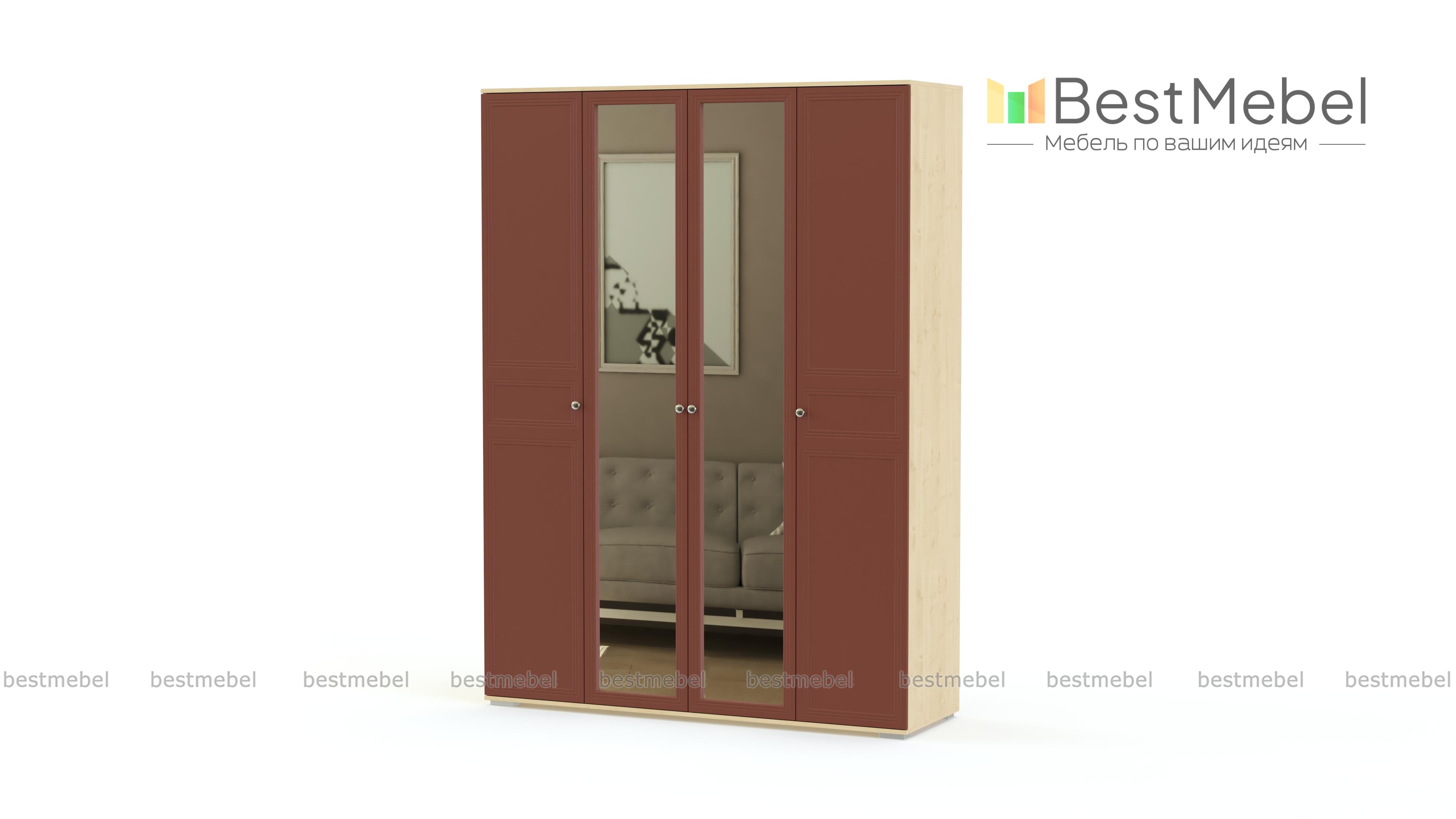 Распашной шкаф Карина 1 BMS гармонично впишется в интерьер спальни, гостиной или прихожей и разместит предметы гардероба и постельные принадлежности. Четырехдверная модель оборудована платяным отделением и бельевыми полками, распашные створки надежны в эксплуатации и обеспечивают отличный обзор содержимому. В оформлении фасада шкафа скомбинированы ЛДСП натуральных светлых тонов с фрезеровкой и зеркала. Купить распашной шкаф Карина 1 BMS вы сможете по доступной цене в нашем интернет-магазине.