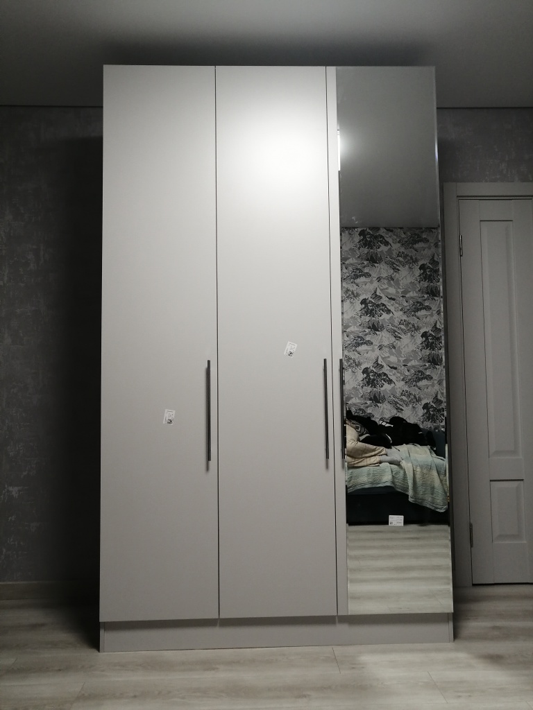 Немногие сайты позволяют полноценно конфигурировать параметры шкафа. В БестМебели всё с этим в порядке. Заказали с зеркалом со скошенными краями - более плавный переход от стекла к панели. Привезли, подняли на наш этаж. Детали выпилены ровно, без замечаний, кромка 2мм прилегает плотно. Воспользовались услугой "сборка" - два бравых хлопца менее чем за час установили этого красавца, подмели и подготовили упаковочный материал к выносу. Респект. Недорого и качественно.