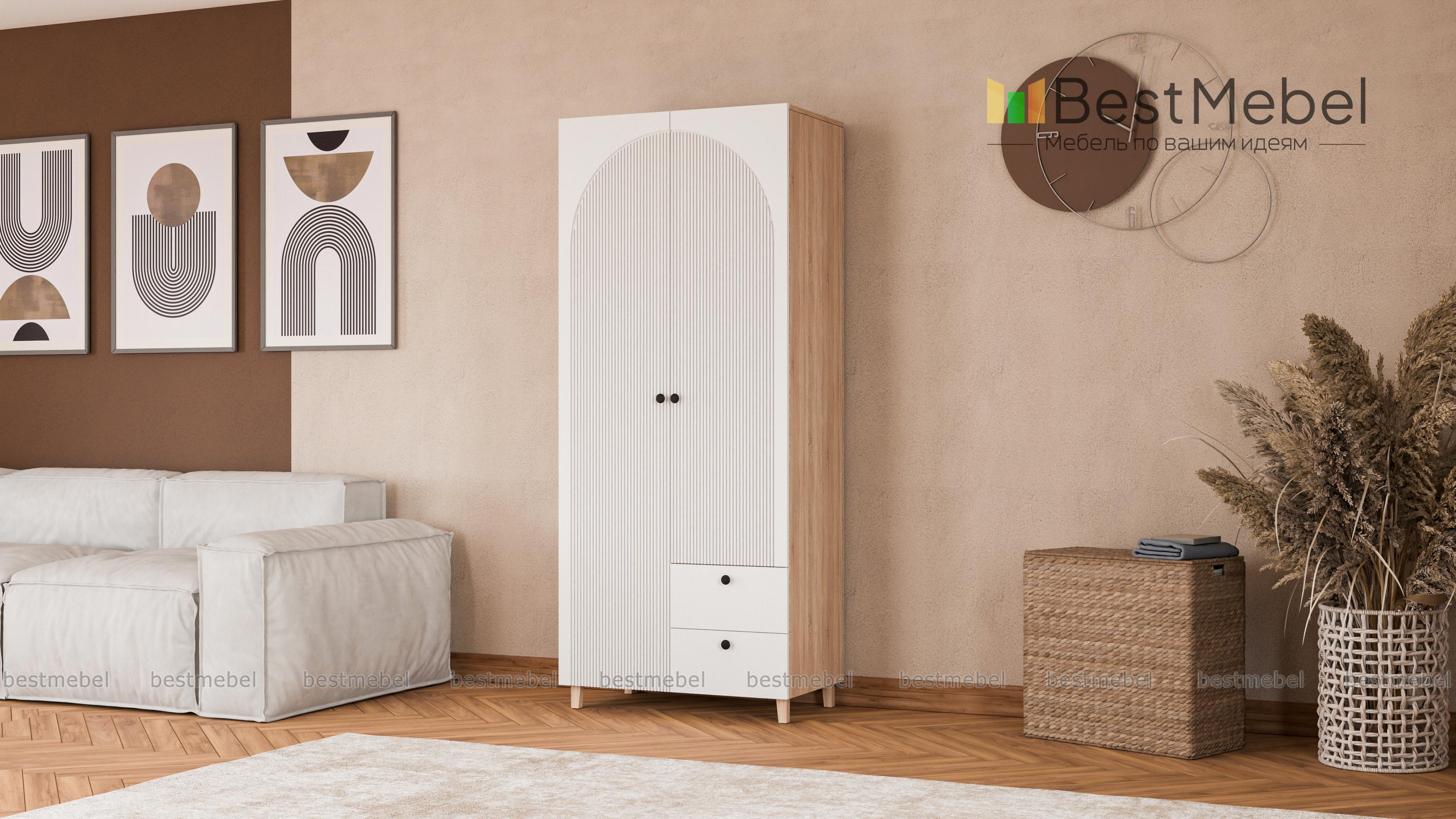 Шкаф распашной Вивьен 3 BMS поможет вам поддерживать в комнате порядок и оптимально использовать пространство. Небольшой гардероб включает в себя платяное отделение с двумя дверцами и два выдвижных ящика под мелкий трикотаж. Высокие опоры придают конструкции легкость, а в качестве стильного акцента использована оригинальная фрезеровка фасада. Купить шкаф распашной Вивьен 3 BMS приглашаем в наш интернет-магазин, подобрав нужные размеры, фурнитуру и цвет из каталога.