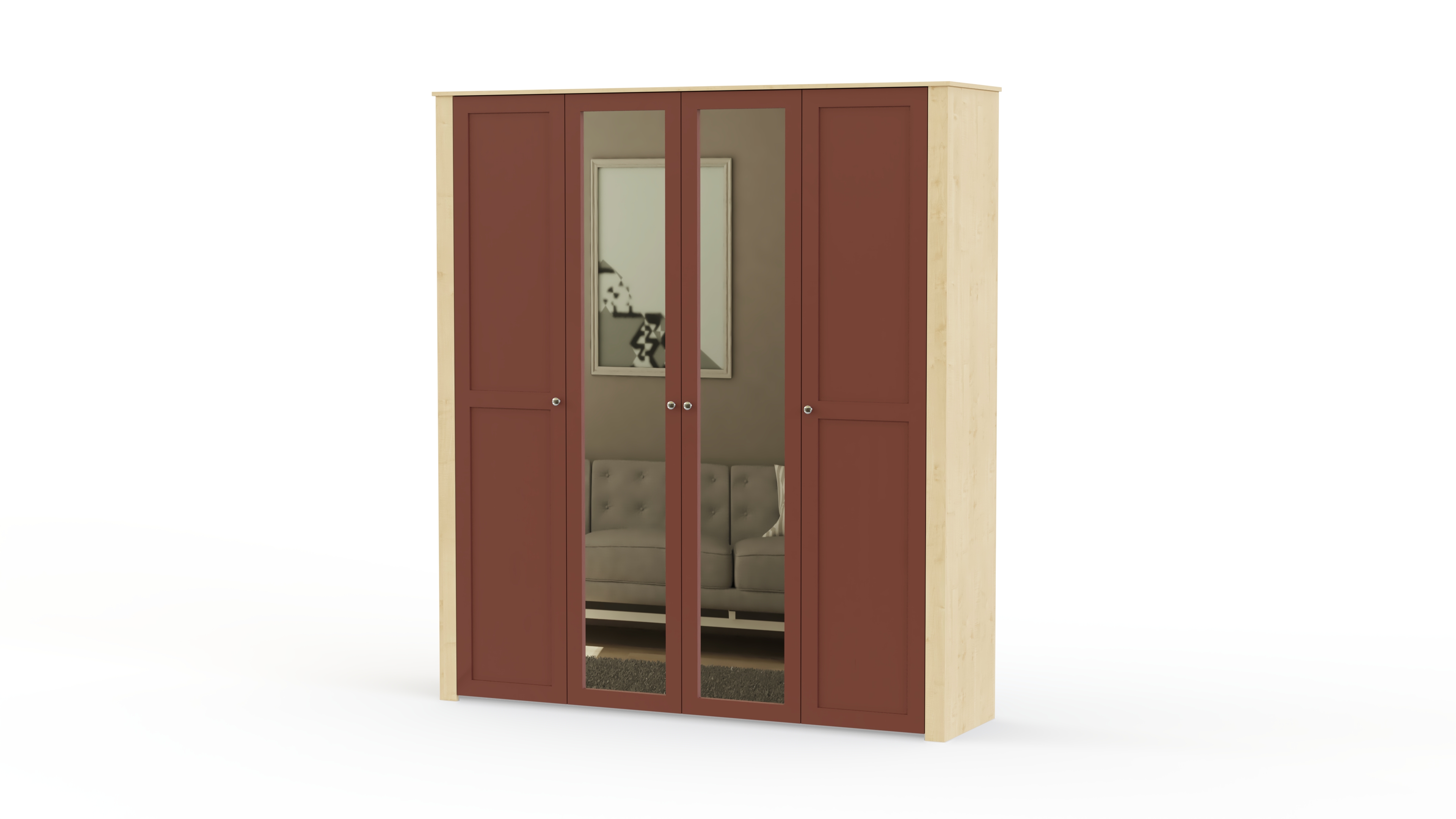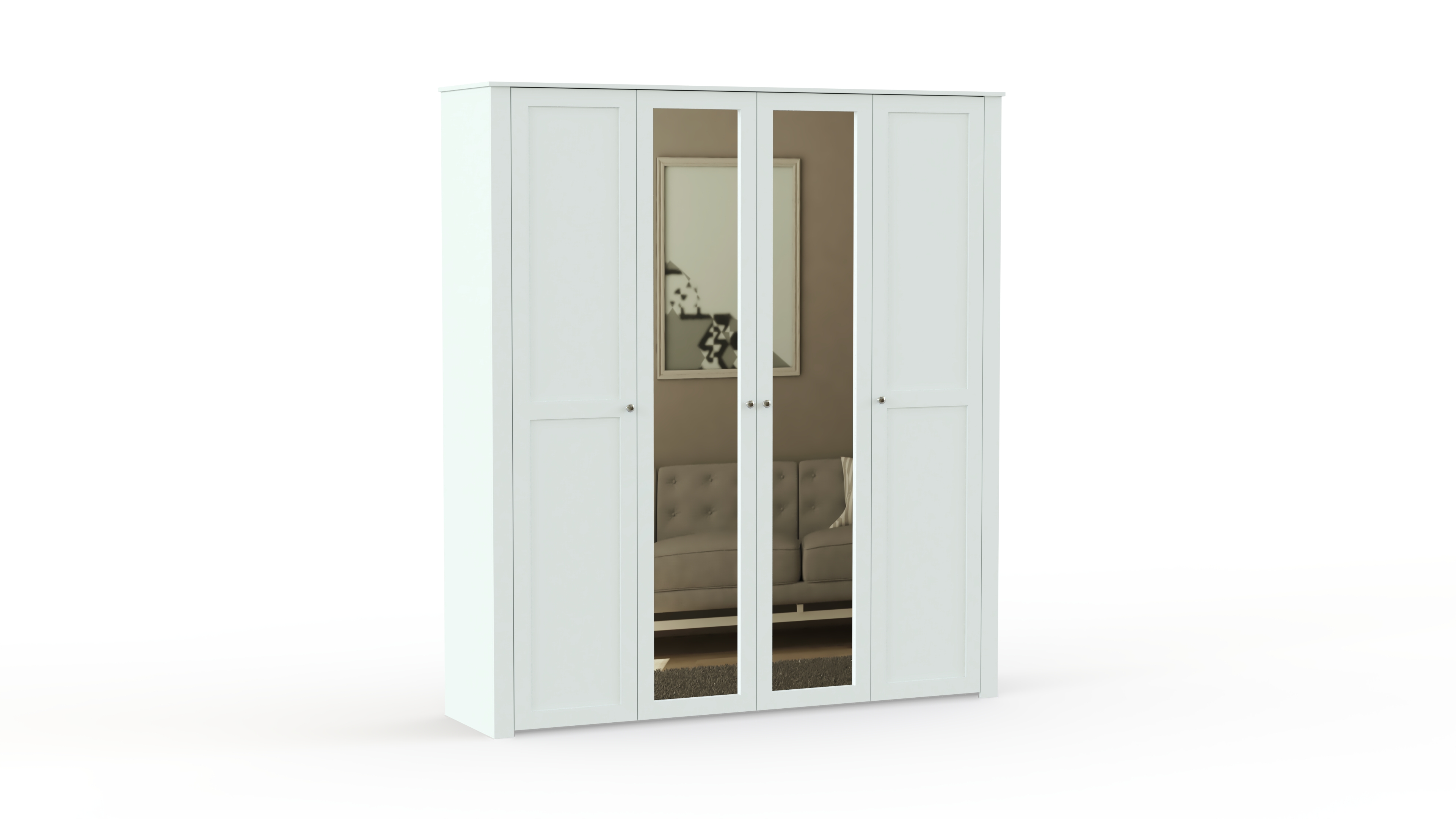 Еще одна модель в полюбившемся владельцам современных квартир и загородных домов стиле прованс. Нежные цвета, элегантный внешний вид и изящный декор делают спальню Бриз комплектация 2 BMS неизменно популярной. Гарнитур состоит из вместительного шкафа с зеркальными дверцами, двуспальной кровати с мягким изголовьем, дополненной оригинальными тумбами, и милого туалетного столика с винтажными ящичками и овальным поворотным зеркалом для идеального макияжа.