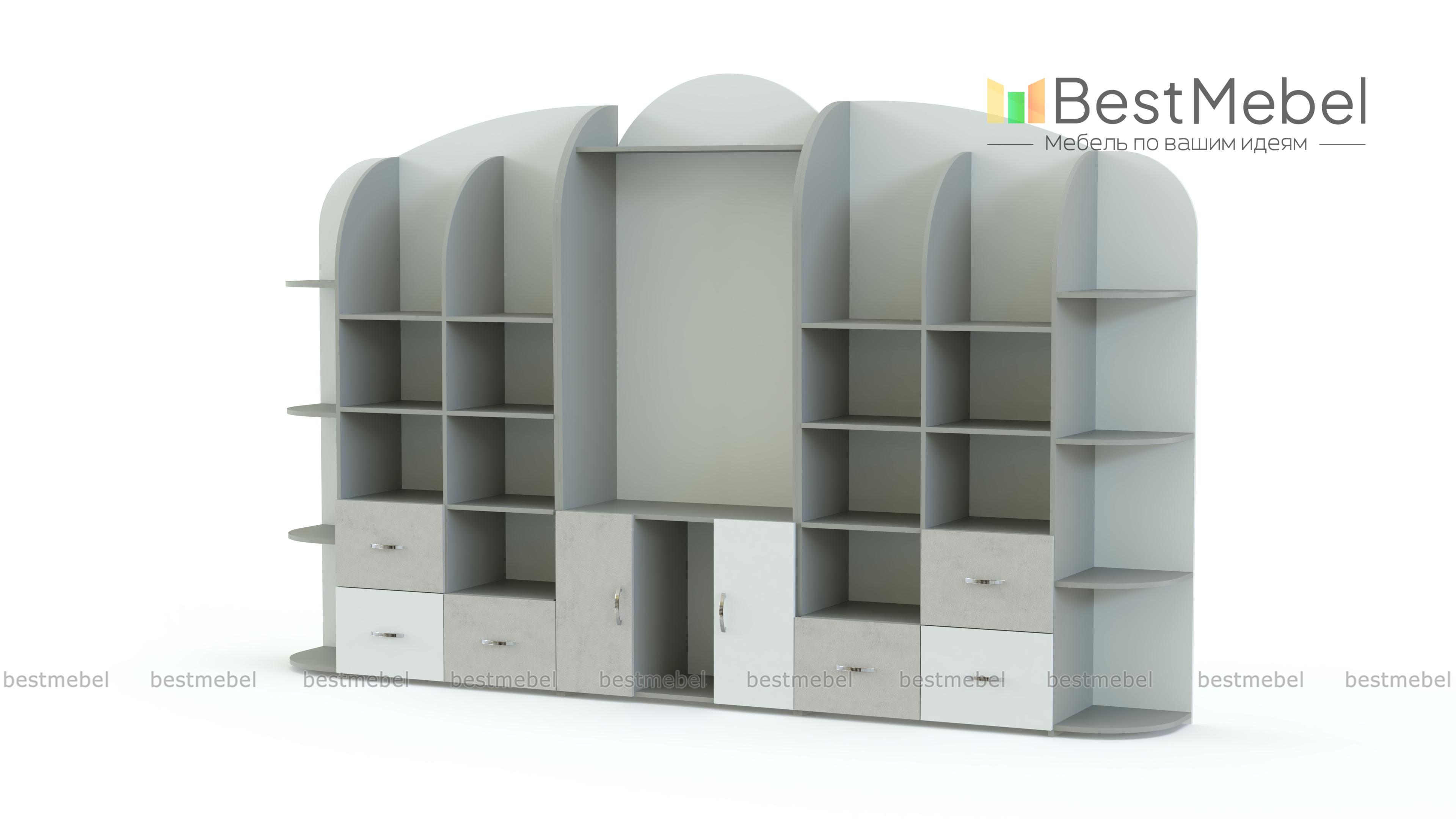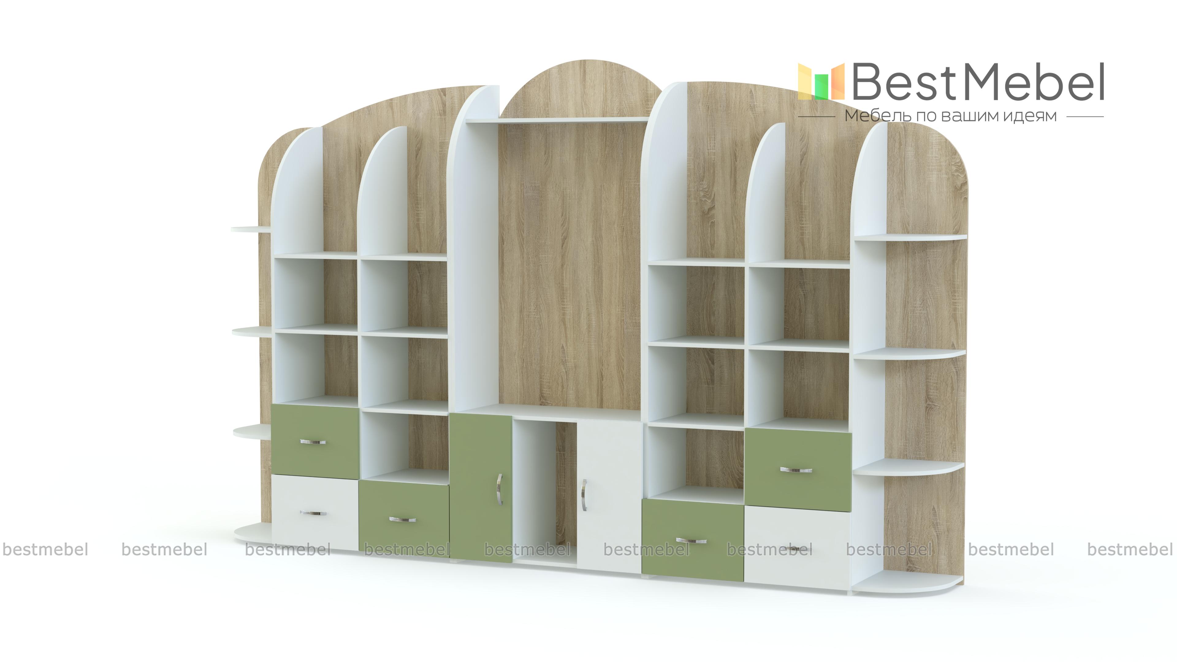 Стеллаж Астра 15 BMS станет практичным выбором для меблировки детских садов и развивающих центров. Горка с фигурной задней стенкой и просторной нишей под ТВ в центре оборудована множеством открытых полок, распашными шкафчиками и выдвижными ящиками для хранения книг, игрушек и учебных пособий, а по бокам располагаются торцевые полочки для мелочей. Яркий дизайн стеллажа обязательно понравится малышам, а надолго сохранить эстетичный вид помогут износостойкие материалы. Купить стеллаж Астра 15 BMS с выбором фурнитур и цвета по каталогу вы сможете в нашем интернет-магазине.