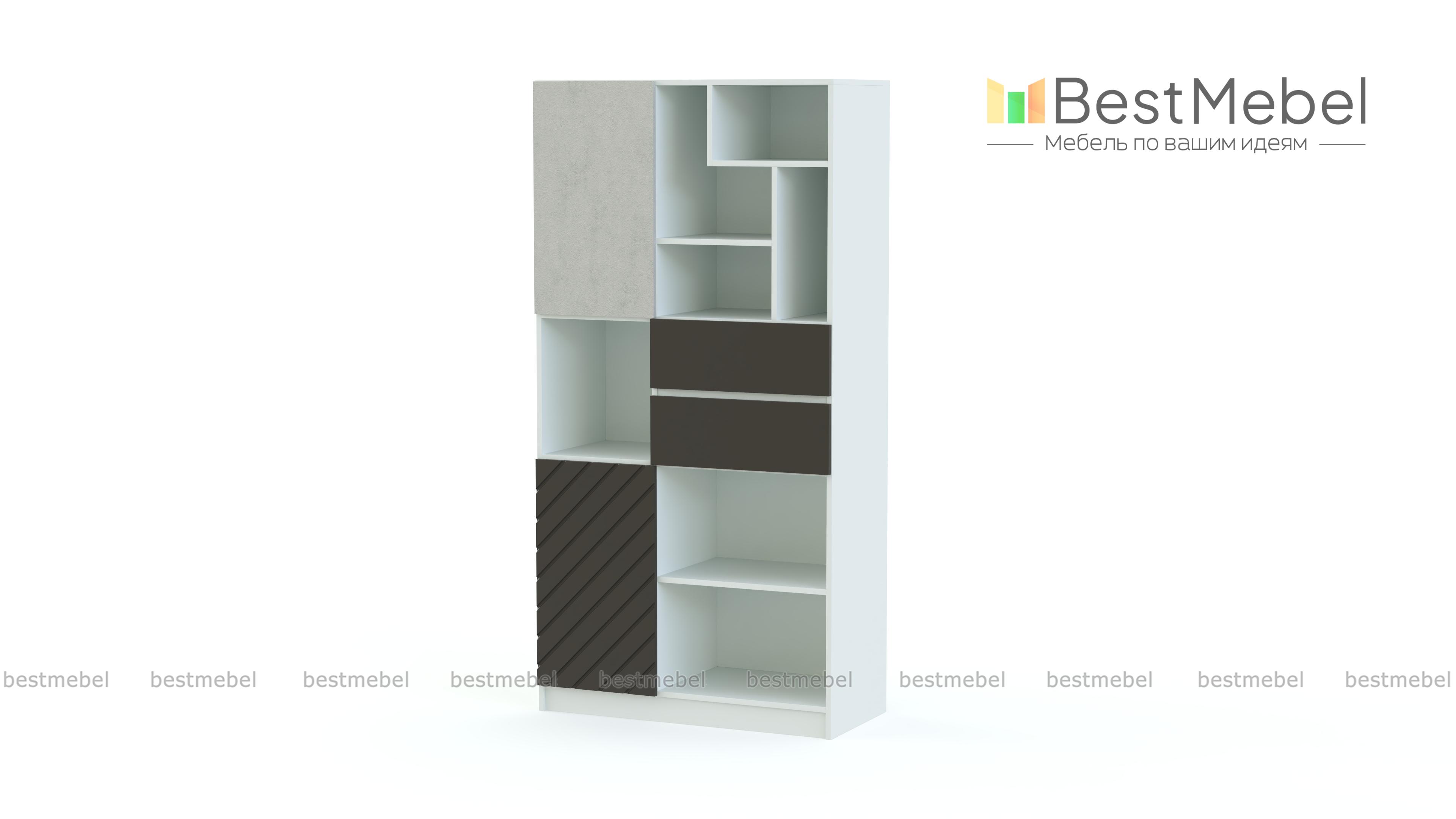 Стеллаж Блоу 10 BMS – это целый лабиринт открытых полок, два глубоких выдвижных ящика и два распашных отделения. Комбинированный высокий стеллаж станет отличным выбором для комнаты современного подростка, помогая компактно разместить принадлежности для школы и творчества, личные вещи, декоративные мелочи и еще многое другое. Стильную геометрию модели подчеркнет сочетание серого матового, белого с фрезеровкой и декора светлых древесных тонов. Купить стеллаж Блоу 10 BMS приглашаем в наш интернет-магазин.