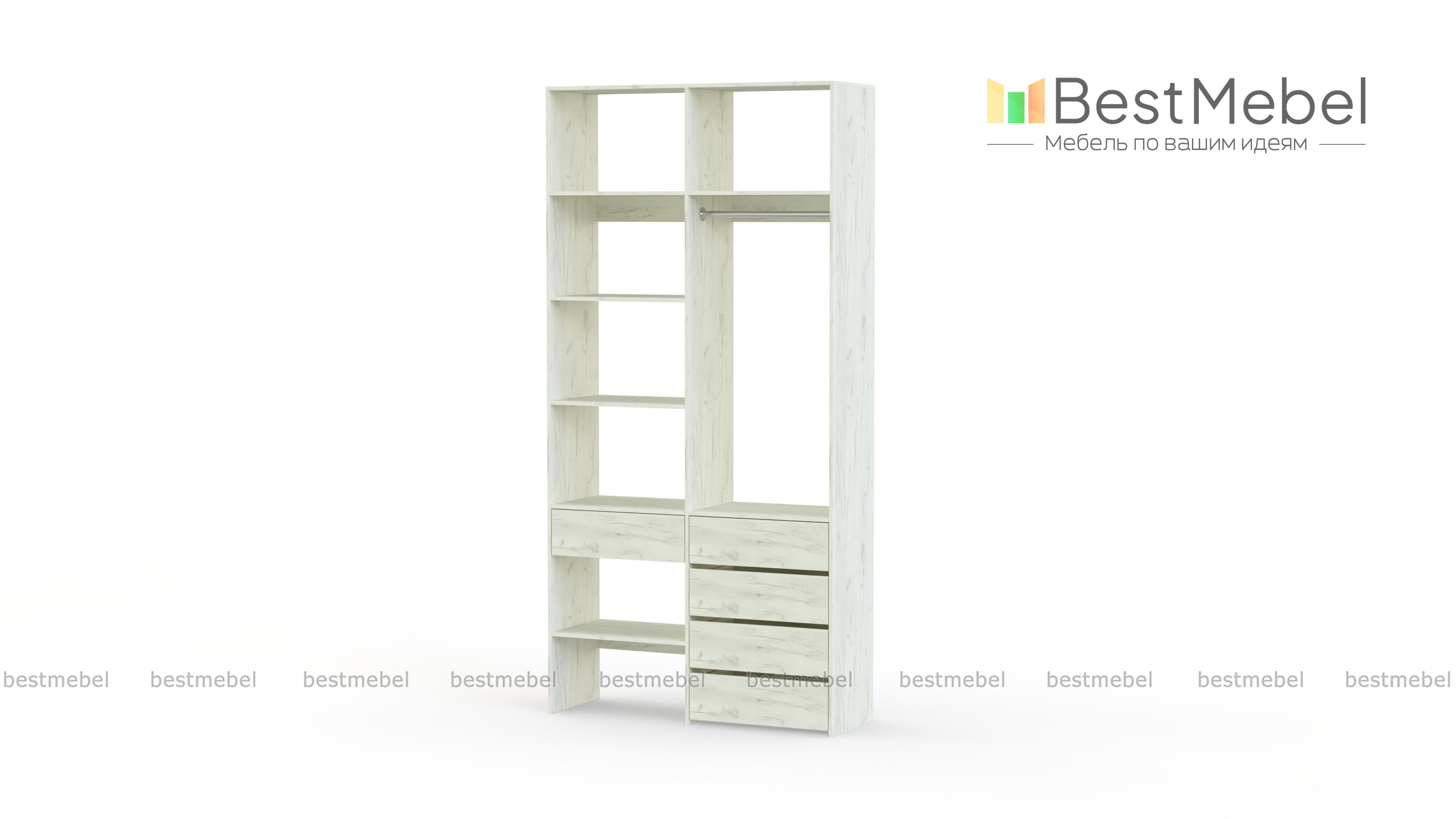Стеллаж для одежды Мирта 1 BMS подходит для обустройства гардеробной, спальни или торгового зала. Изготовленная из высококачественной ламинированной плиты, конструкция обладает прочностью и долговечностью. Открытые полки дополнены штангой и пятью выдвижными ящиками, позволяя разместить одежду на вешалках и в сложенном виде, обувь и аксессуары. Купить стеллаж для одежды Мирта 1 BMS в необходимом размере и цвете вы сможете на сайте нашего интернет-магазина.