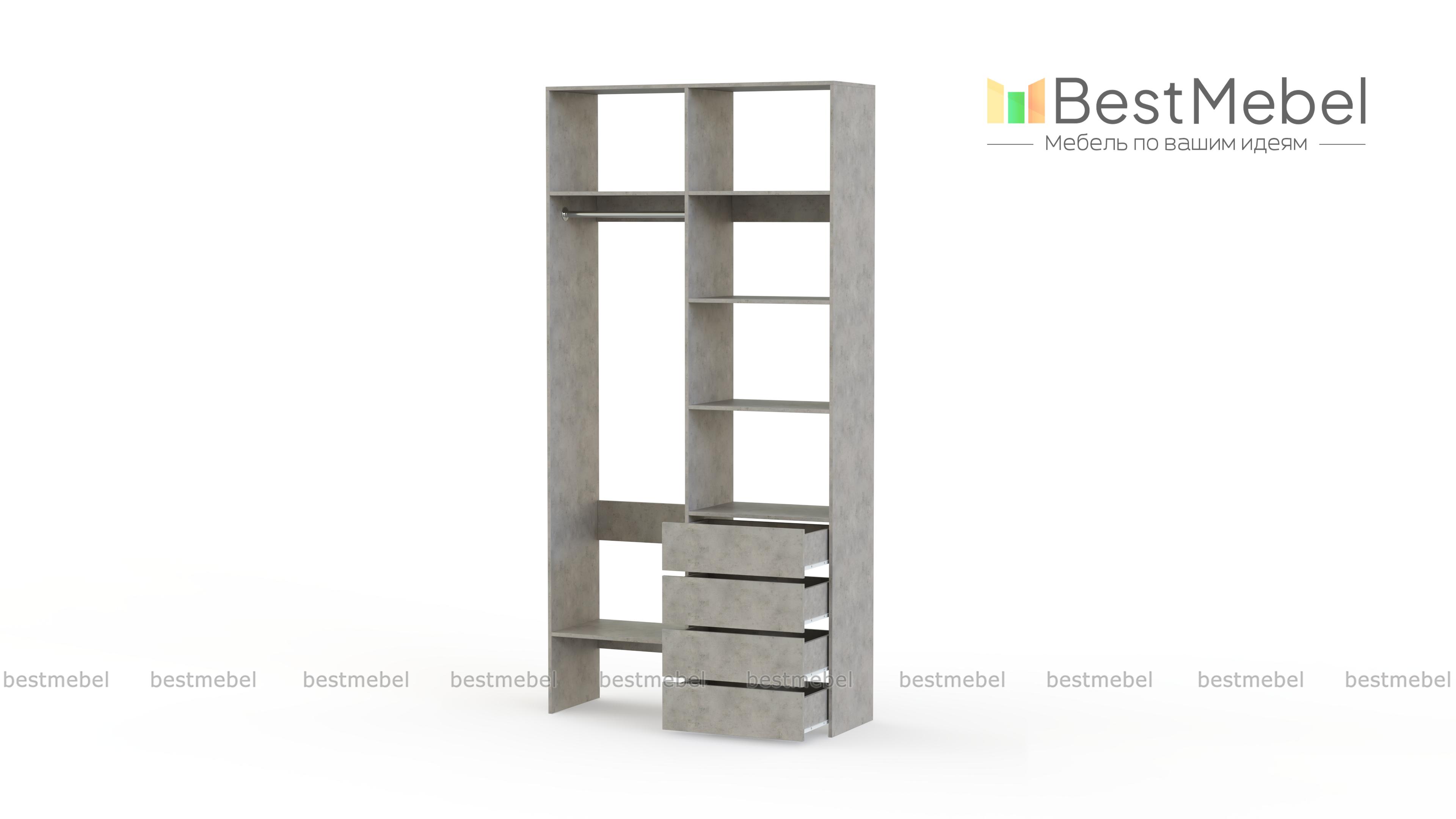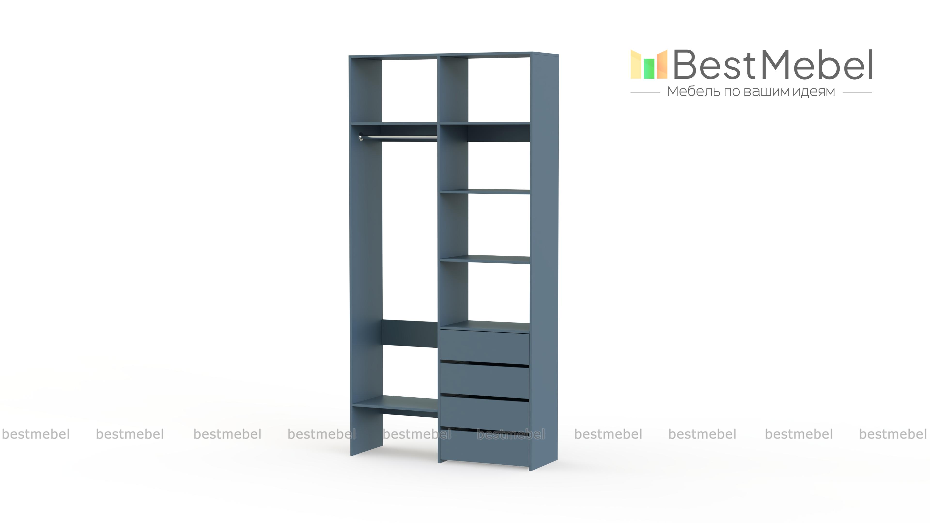 Стеллаж для одежды Мирта 2 BMS поможет вам организовать хранение дома или в торговом зале. Открытая конструкция со штангой, полками и рядом из четырех выдвижных ящиков подходит для размещения одежды на вешалках, коробок с обувью и мелкого трикотажа. Материал изготовления – устойчивая к износу и долговечная ламинированная плита в базовом оттенке. Купить стеллаж для одежды Мирта 2 BMS приглашаем в наш интернет-магазин, подобрав необходимые размеры и цвет по каталогу.