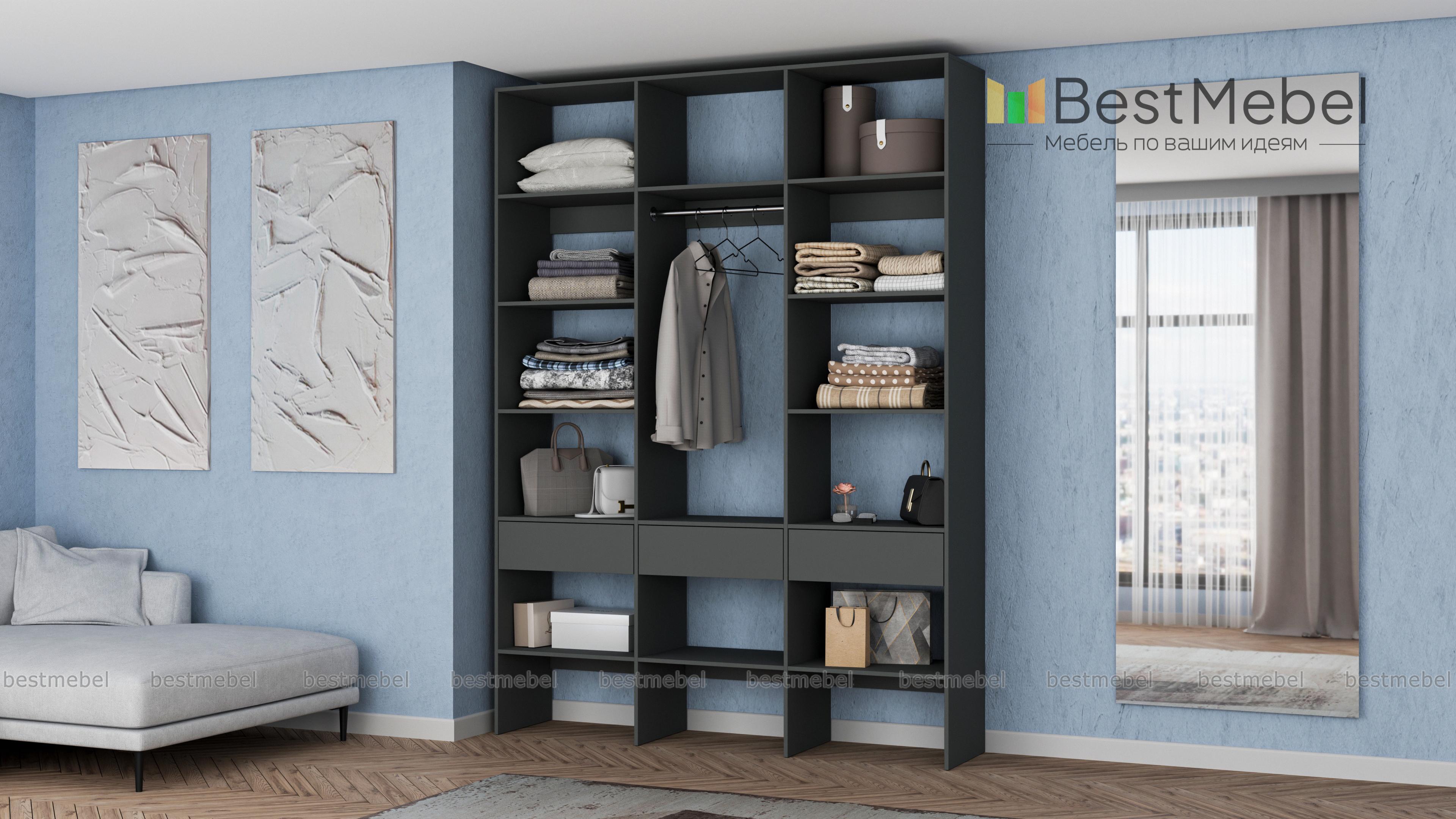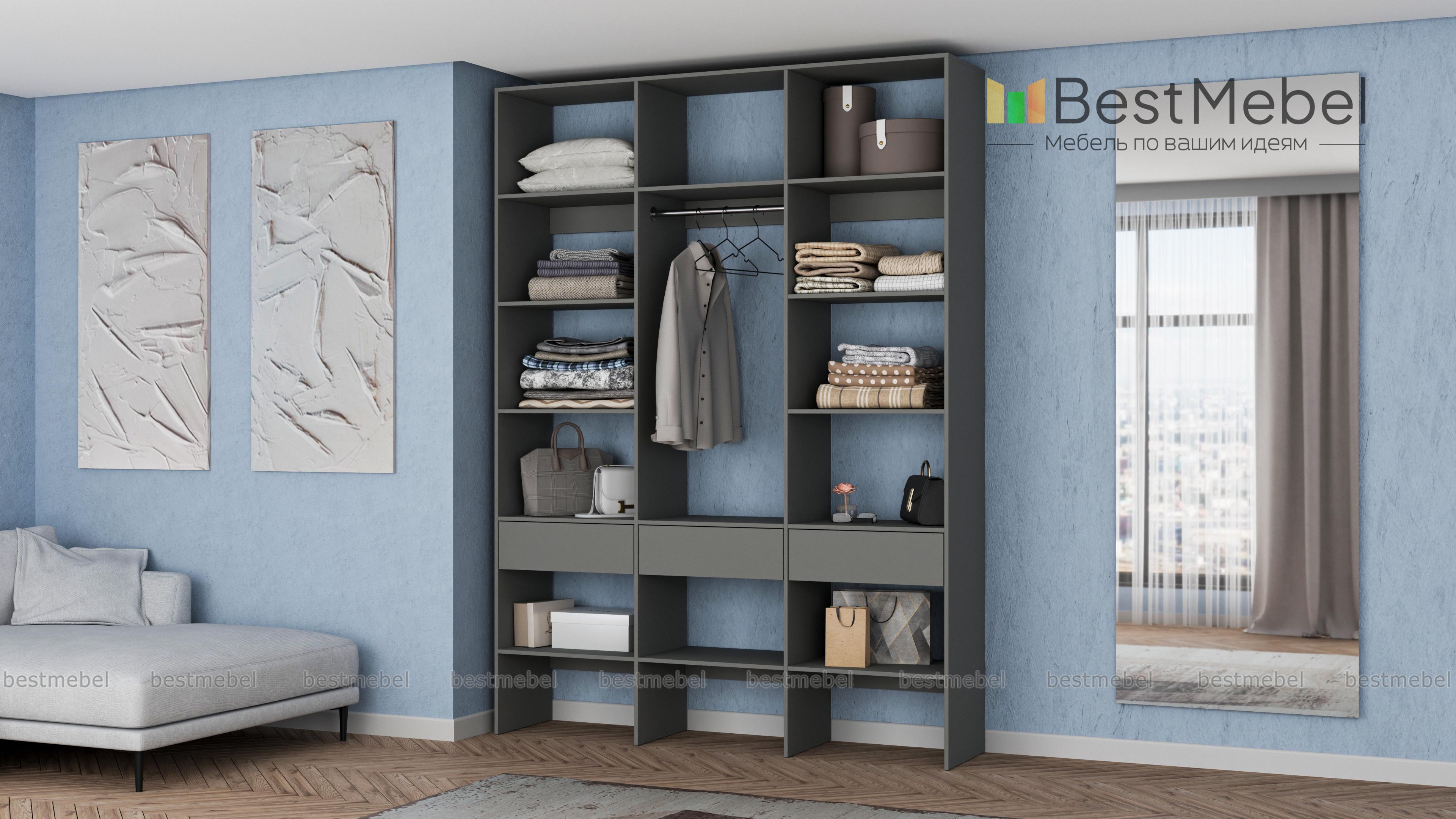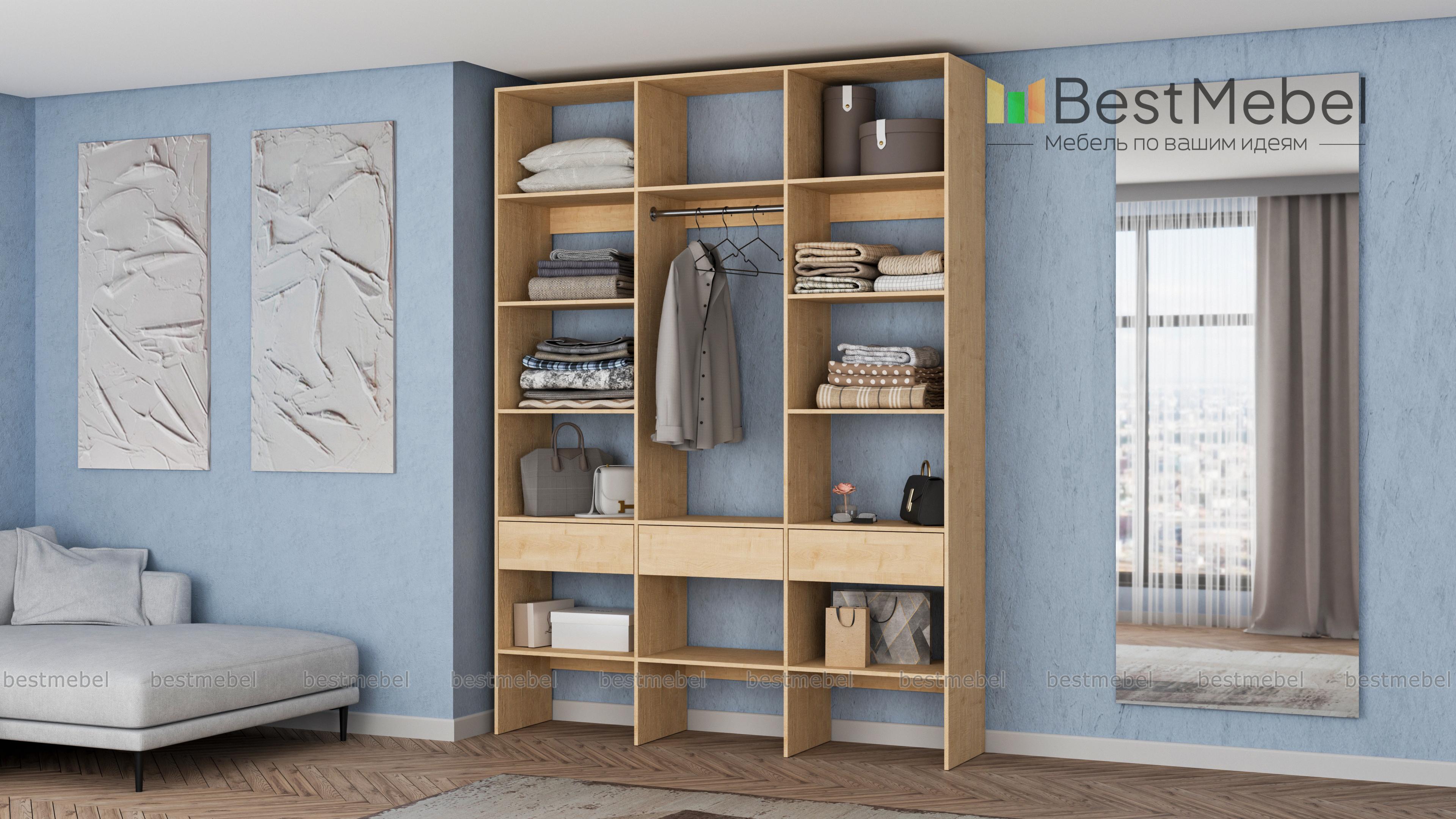 Стеллаж для одежды Мирта 50 BMS поможет вам с комфортом оборудовать прихожую или гардеробную. Выполненная из ламинированной плиты, конструкция надежна и долговечна, а поверхности легко очищаются от пыли и загрязнений. На удобной высоте располагаются платяная штанга, полки для одежды, обуви и органайзеров и три выдвижных ящика под мелкий трикотаж и аксессуары. Купить стеллаж для одежды Мирта 50 BMS в необходимом размере и цвете приглашаем на сайт нашего интернет-магазина.