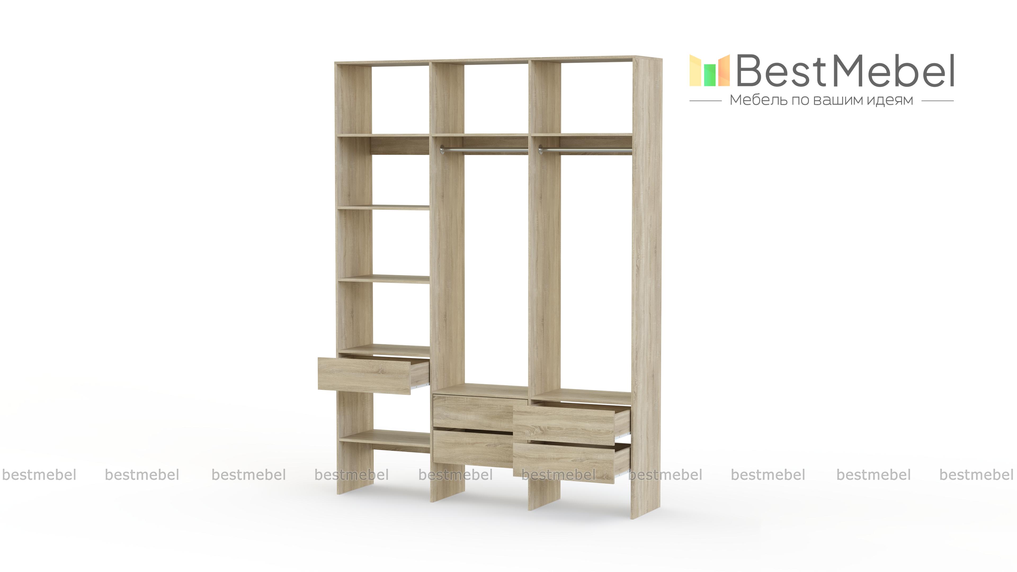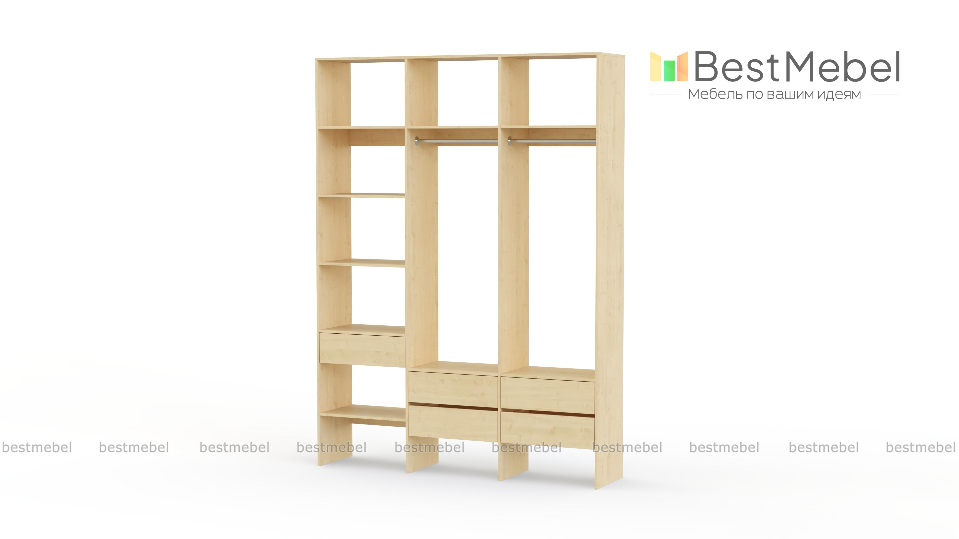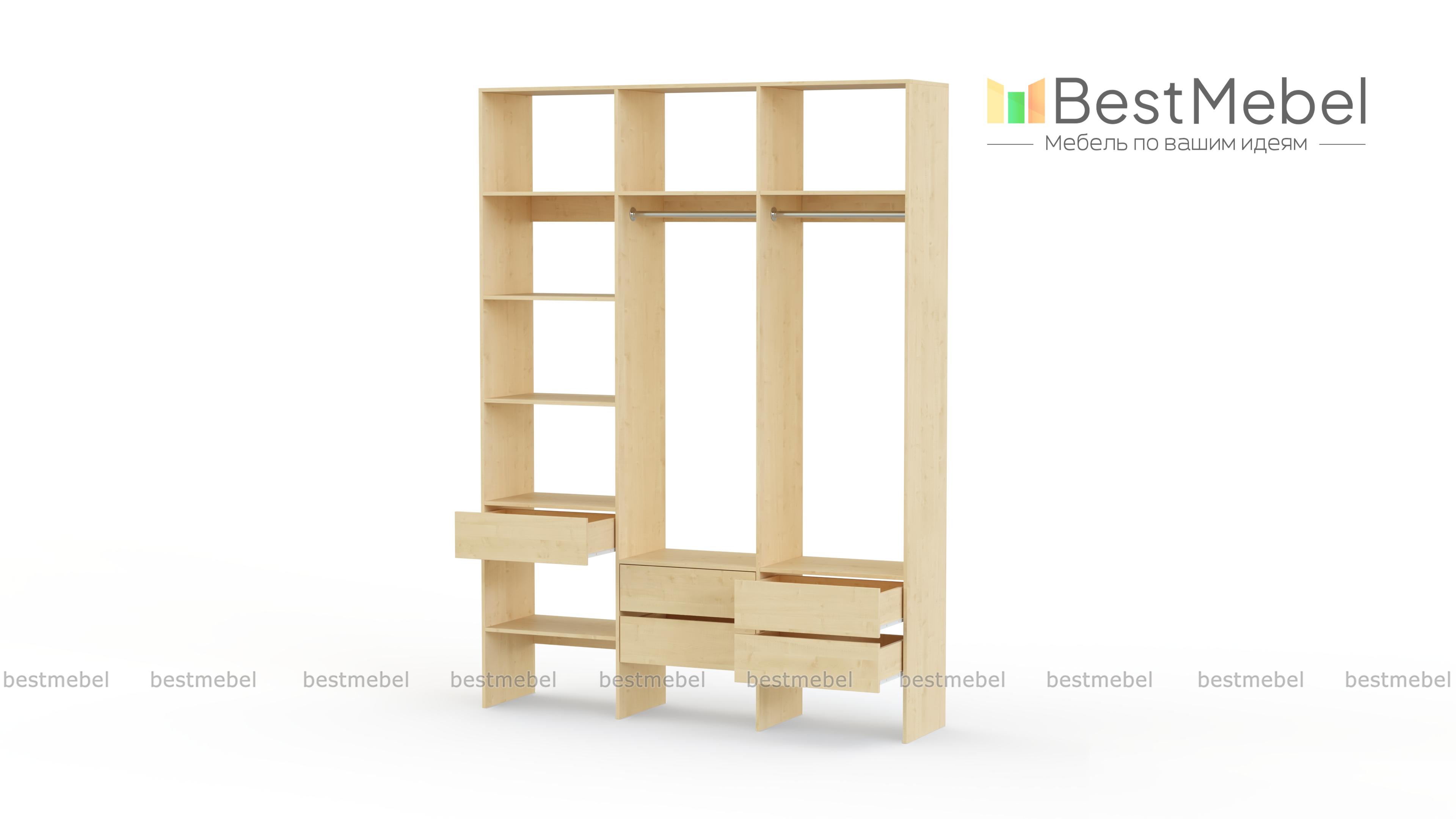 Стеллаж для одежды Мирта 53 BMS поможет вам организовать хранение в гардеробной комнате или прихожей. Открытая конструкция включает два отделения со штангами, пять выдвижных ящиков и полки, на которых можно разместить как обувь, так и стопки одежды, домашний текстиль, коробки с мелочами. Ламинированные поверхности отличаются износостойкостью и простотой ухода. Купить стеллаж для одежды Мирта 53 BMS в любом размере и оттенке из каталога приглашаем в наш интернет-магазин.