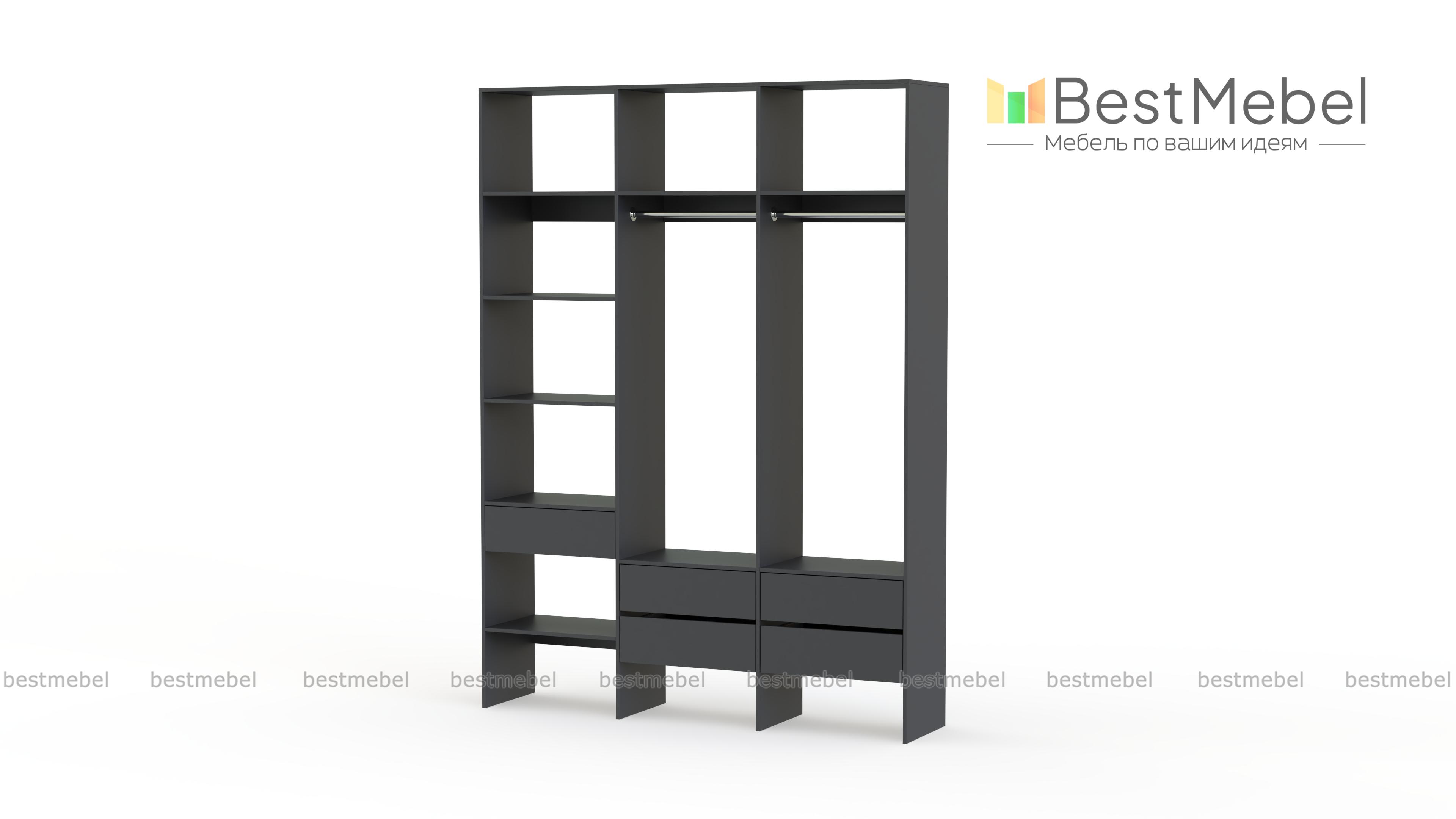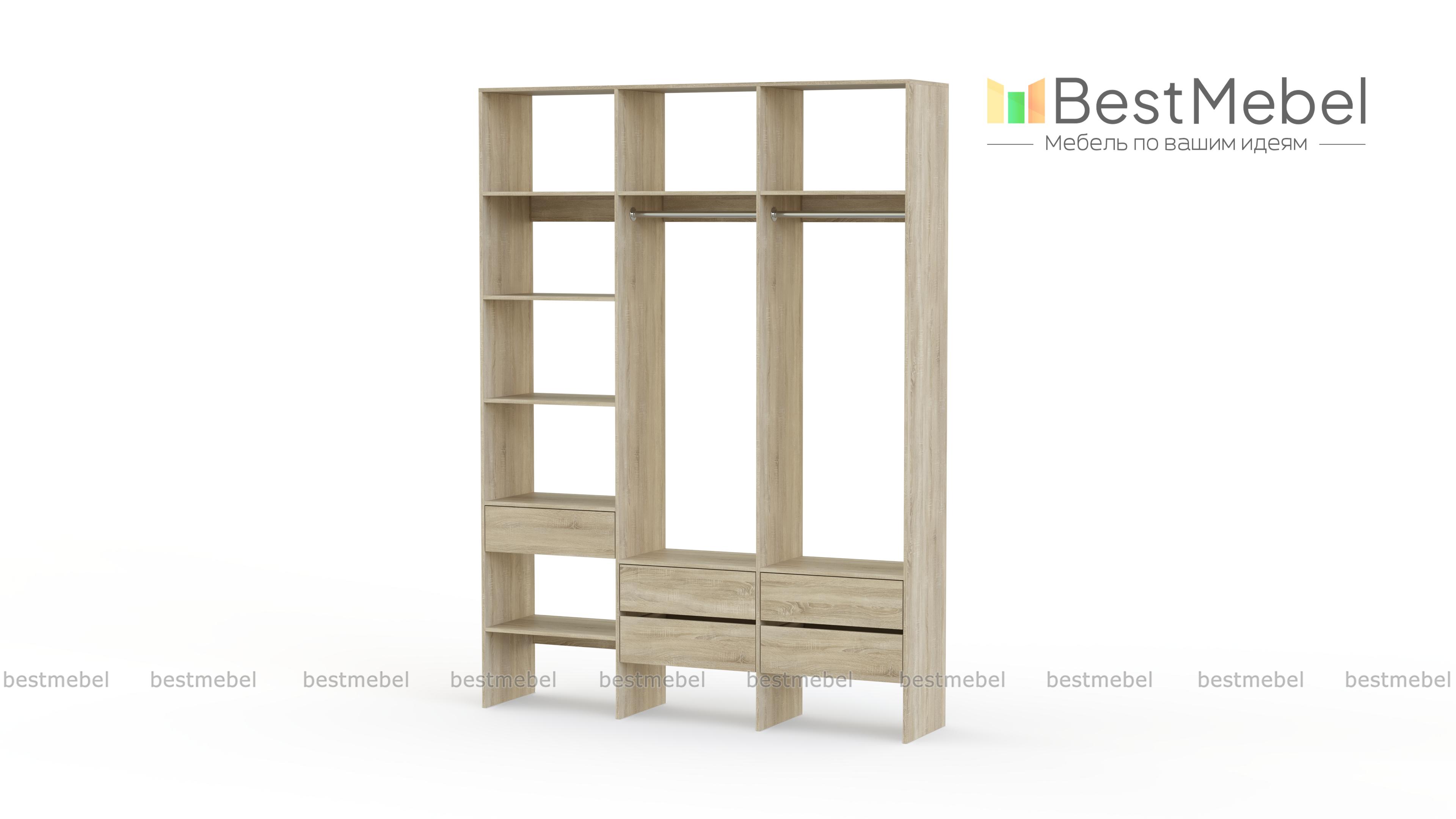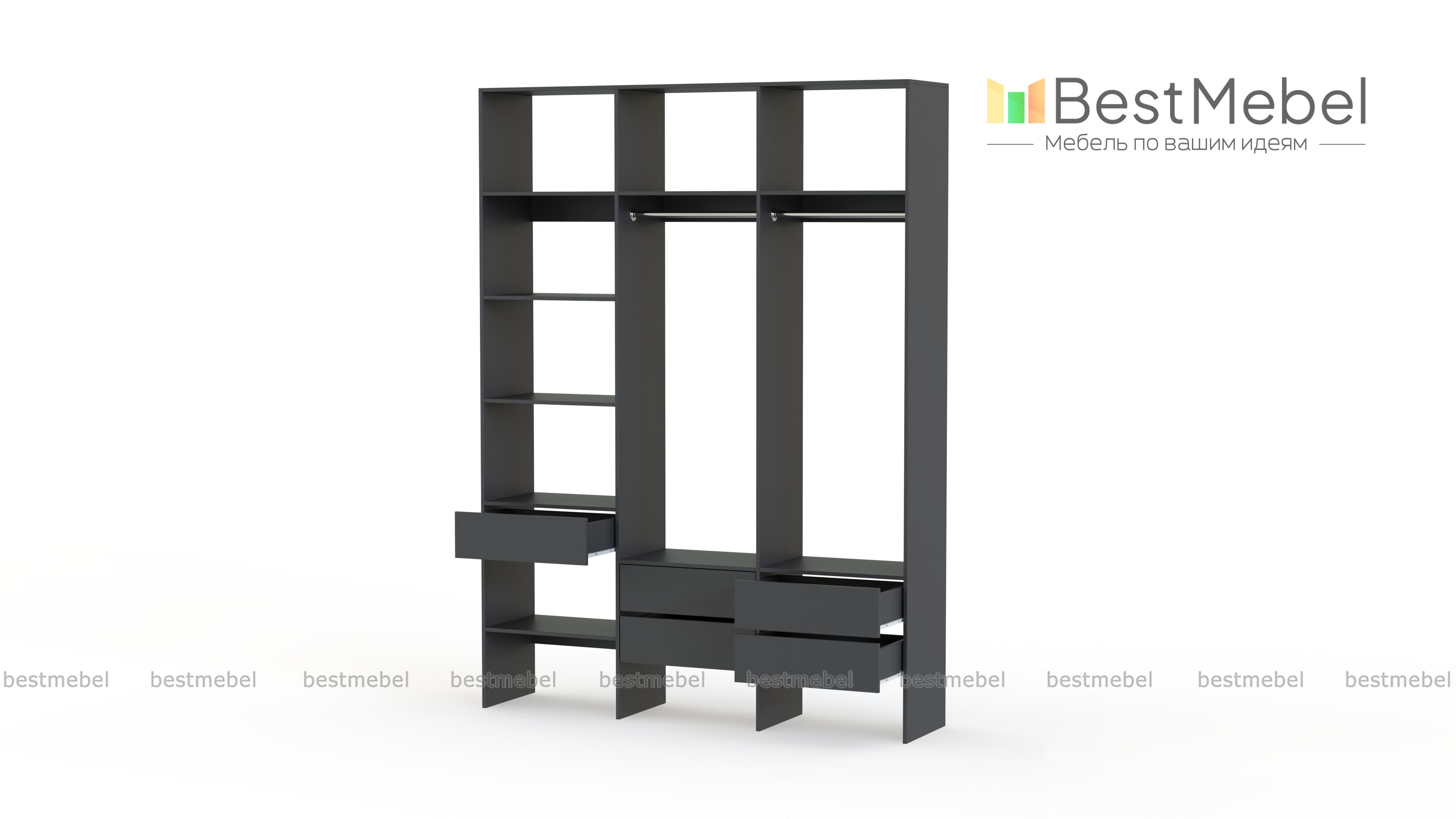 Стеллаж для одежды Мирта 53 BMS поможет вам организовать хранение в гардеробной комнате или прихожей. Открытая конструкция включает два отделения со штангами, пять выдвижных ящиков и полки, на которых можно разместить как обувь, так и стопки одежды, домашний текстиль, коробки с мелочами. Ламинированные поверхности отличаются износостойкостью и простотой ухода. Купить стеллаж для одежды Мирта 53 BMS в любом размере и оттенке из каталога приглашаем в наш интернет-магазин.