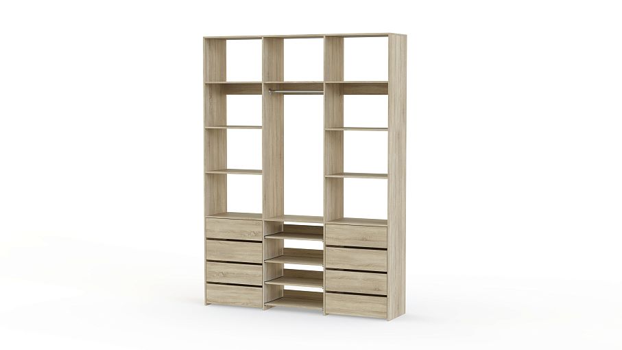 Стеллаж для одежды Мирта 96 BMS предназначен специально для хранения в прихожих, гардеробных, торговых залах. Удобная открытая конструкция объединила платяную секцию с просторными полками и расположенными внизу выдвижными ящиками и панелями. Лаконичный дизайн и природный оттенок подходят интерьерам любого типа, ламинированное покрытие устойчиво к появлению царапин и влаге. Купить стеллаж для одежды Мирта 96 BMS вы сможете в нашем интернет-магазин, подобрав цвет и размеры.
