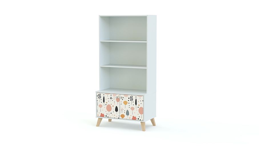 Стеллаж Эльза 1 BMS поможет удобно и красиво поставить книги, разместить игрушки и учебные пособия. Комбинированный стеллаж с открытыми полками и распашным модулем в основании имеет комфортную для ребенка высоту. Устойчивая благодаря скошенным сканди-ножкам конструкция выполнена из экологичной и прочной ламинированной ДСП, на фасаде — пастельный рисунок-фотопечать. Купить стеллаж Эльза 1 BMS вы всегда сможете в нашем интернет-магазине, по желанию изменив цвет и размеры.
