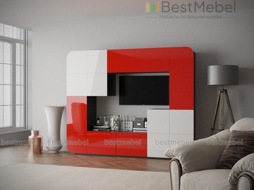 Необычный дизайн модели Пенелопа-4 BMS оценят поклонники минимализма и стиля хай-тэк. Контрастная яркая расцветка, гладкие матовые фасады и обтекаемая форма станут органичным дополнением ультрасовременной гостиной. В комплект входят расположенные по периметру отдельные модули – разнообразные закрытые отделения и выдвижные ящики. Расположенный в центре композиции ТВ становится ее частью. Дверцы и ящики без ручек открываются с помощью нажатия на фасад.