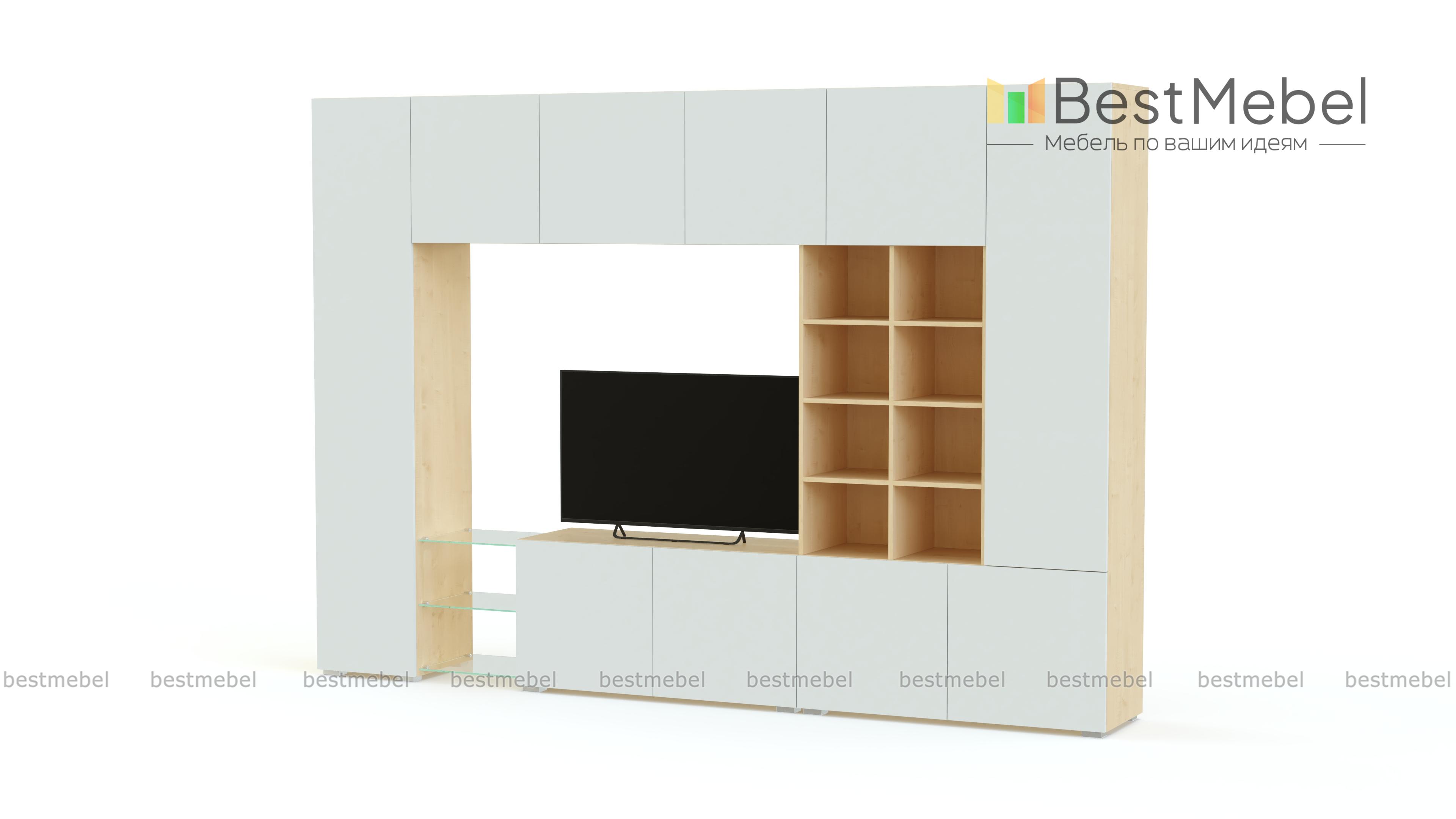 Стенка Купертино Некст 1.1 BMS – это отличная вместительность, визуальная легкость и эффектный современный дизайн. Строгая геометрия стиля хай-тек подчеркнута лаконичной простотой матовых цветных фасадов без ручек. В комплект входят высокие распашные колонки с полками, тумба под ТВ, подвесные секции и внутренний стеллаж. Оригинальным акцентом станут стеклянные полки в нижней части композиции. Купить стенку Купертино Некст 1.1 BMS, подобрав необходимые параметры, приглашаем недорого в наш интернет-магазин.