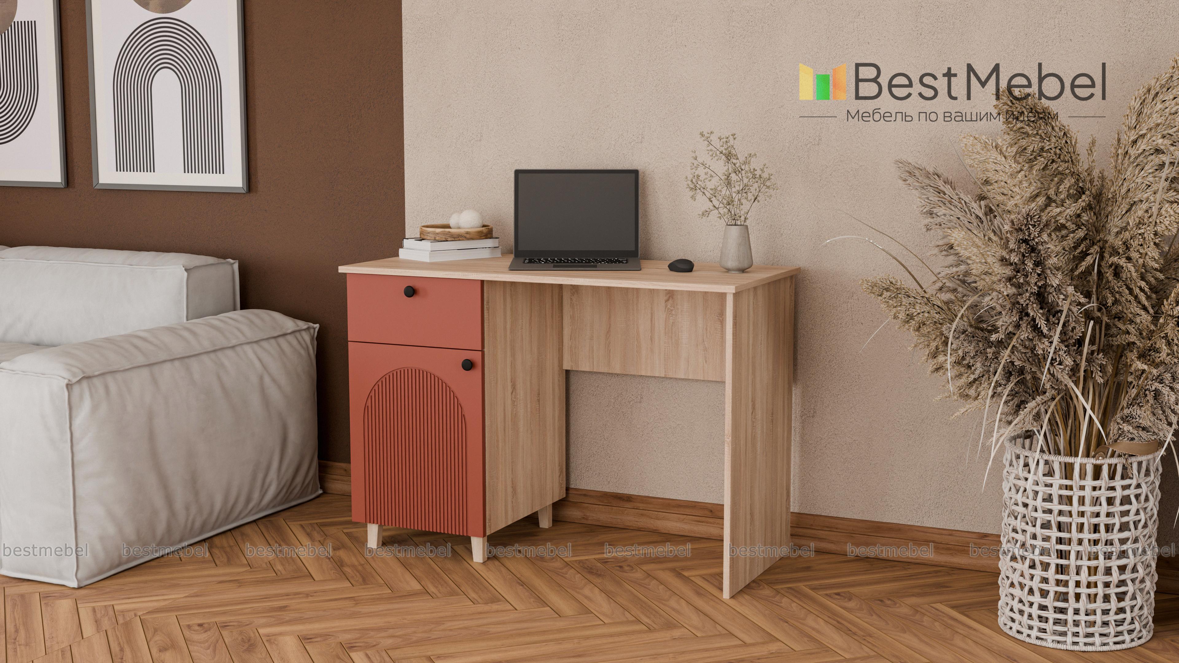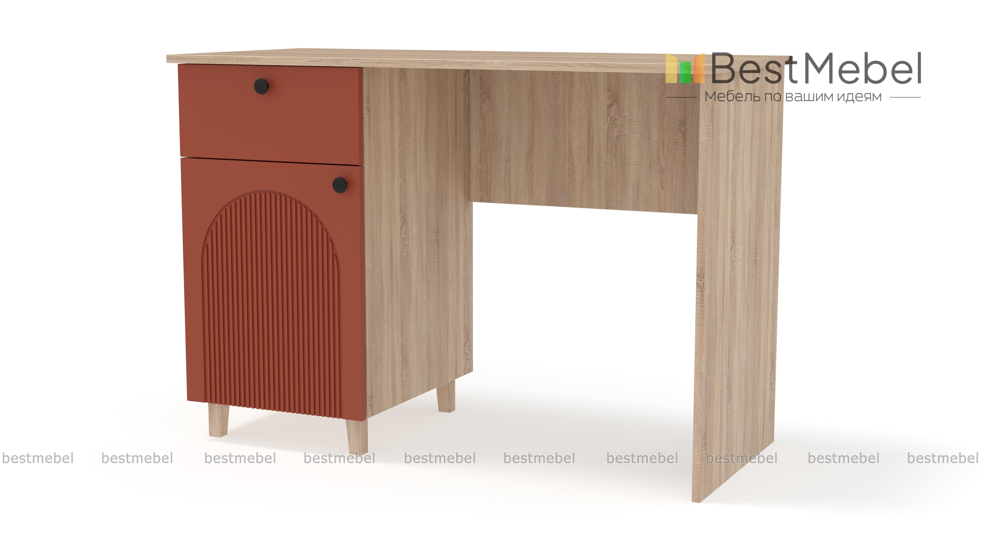 Письменный стол Рене 1 BMS с рифленым фасадом и ножками подходит для меблировки комнаты школьника или кабинета. Выдвижной ящик под столешницей и распашное отделение с полками помогают убрать мелочи, поддерживая порядок на рабочем месте. Благодаря актуальной палитре и стильному рельефу стол гармонично вписывается в современные интерьеры. Купить письменный стол Рене 1 BMS с индивидуальным подбором цвета и размеров вы сможете в нашем интернет-магазине.