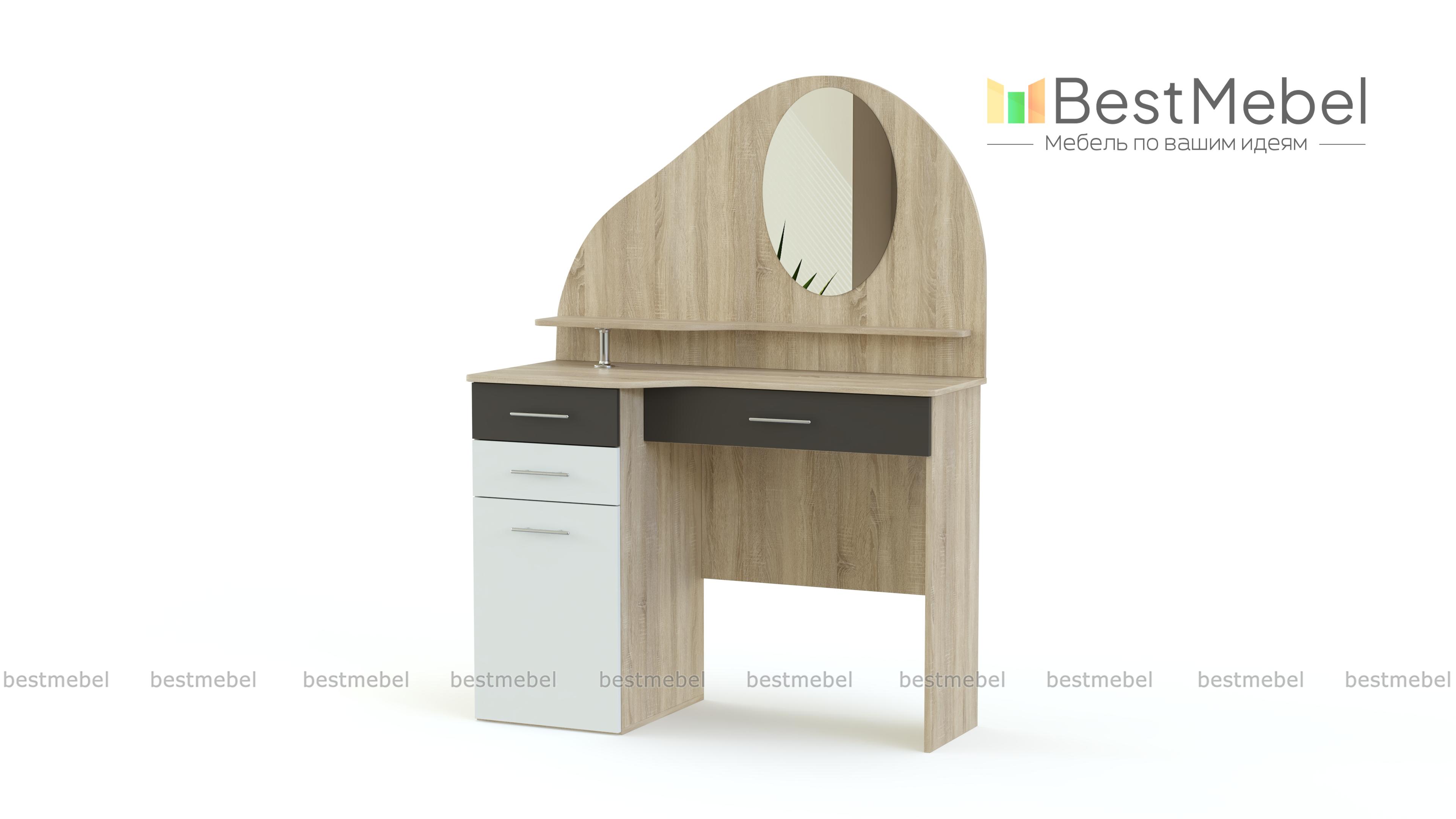 Столик Ванесса-3 BMS – это изящная модель для детской или молодежной комнаты в нежной бело-персиковой гамме. Столик оборудован столешницей волнообразной формы, под которой располагаются выдвижной ящик для важных мелочей и тумба. Панель надстройки с овальным зеркалом и открытой полочкой фигурно вырезана. Износостойкие и простые в уходе поверхности станут залогом эстетичного внешнего вида. Купить столик Ванесса-3 BMS для уютного и функционального интерьера приглашаем в наш интернет-магазин.
