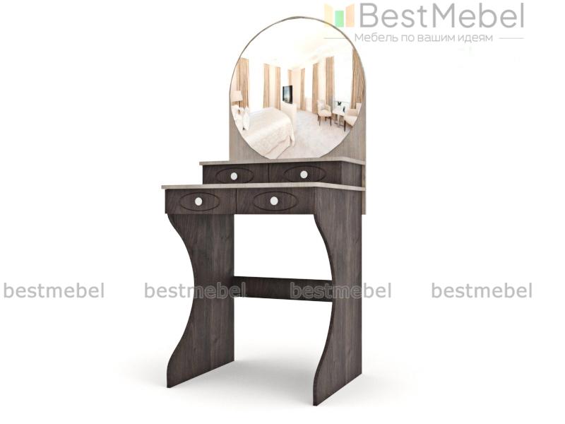 Еще одна романтичная классическая модель для придания законченного образа спальне в стиле прованс или бохо-шик. Легко ее представить и в загородном доме. Женственное круглое зеркало отлично гармонирует с двумя рядами вместительных ящичков для косметики и парфюмерии. Дополняют образ изящно вырезанные боковины, контраст темного и светлого цвета и оригинальная, немного ретро, отделка и фурнитура. С туалетным столиком СТ №3 BMS уход за собой будет настоящим удовольствием.