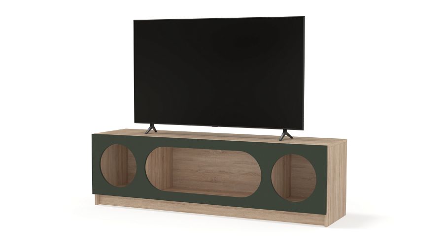 Тумба под ТВ Руди 3 BMS с фигурными отверстиями для демонстрации предметов выполнена в современном стиле. Под широкой надежной столешницей располагаются три полки разных размеров — для любимых гаджетов, книг и интерьерных украшений. Сочетание качественной ламинированной плиты и фасада из МДФ делает конструкцию прочной, долговечной и эстетичной. Купить тумбу под ТВ Руди 3 BMS в подходящей именно вам цветовой гамме можно на сайте нашего интернет-магазина.