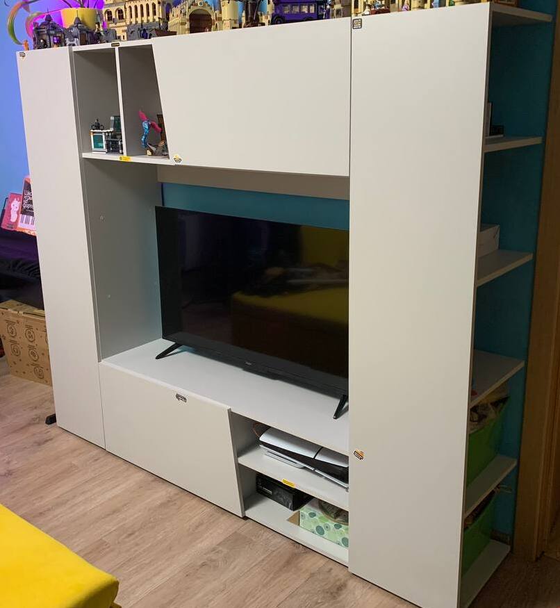 Заказ 00000128586Стенка не смотрится громоздко, но при этом в ней много мест для хранения. Собирается легко.