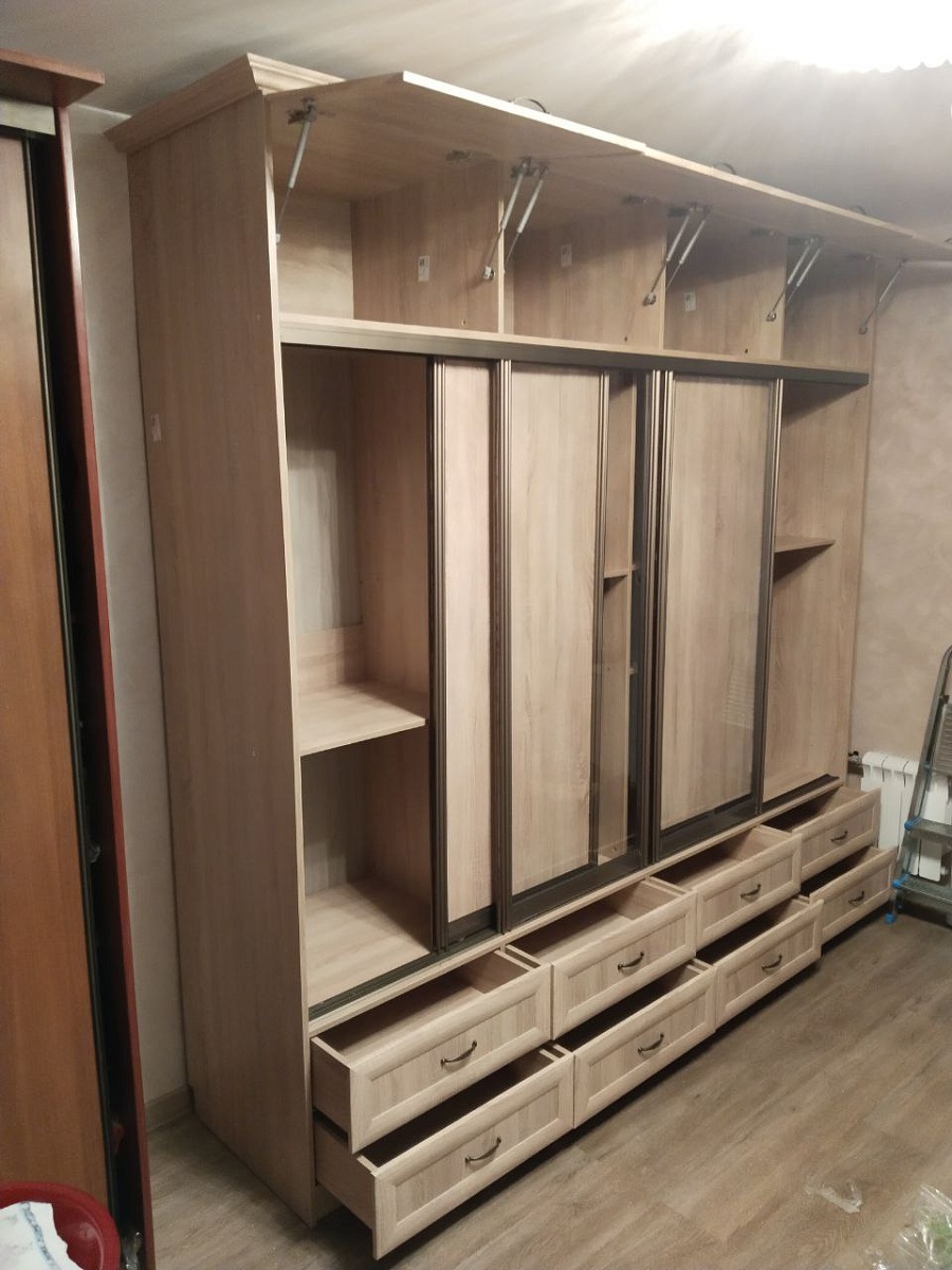 Шкафом ОЧЕНЬ довольны. Толковый, вместительный, устойчивый, производитель свободно идёт навстречу разумным пожеланиям заказчика. Произошёл один незапланированный момент, и производитель сразу решил проблему. И это дополнительный сигнал к тому, что закажем здесь снова. Потому что ошибиться может каждый, но не каждый способен исправить недочёты. Фурнитуру взяли Блюм, профиль Н-образный. Очень надеемся на долгую службу шкафа, и уже запланировали второй аналогичный. По задумке - два шкафа будут стоять рядом, по образу и подобию мебельной стенки.